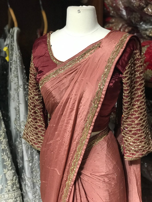 Sold outDusty Rose Saree W/ Readymade Blouse