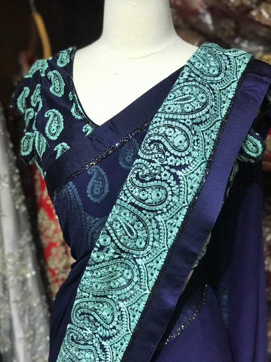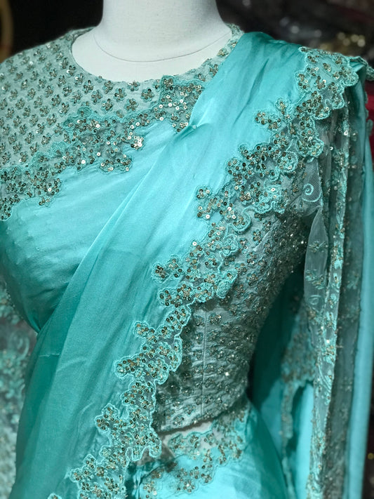 Sold outAqua Teal Saree W/ Readymade Blouse