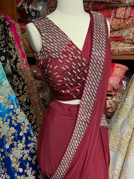 Maroon Pre-Stitched Saree W/ Readymade Blouse PSS-4