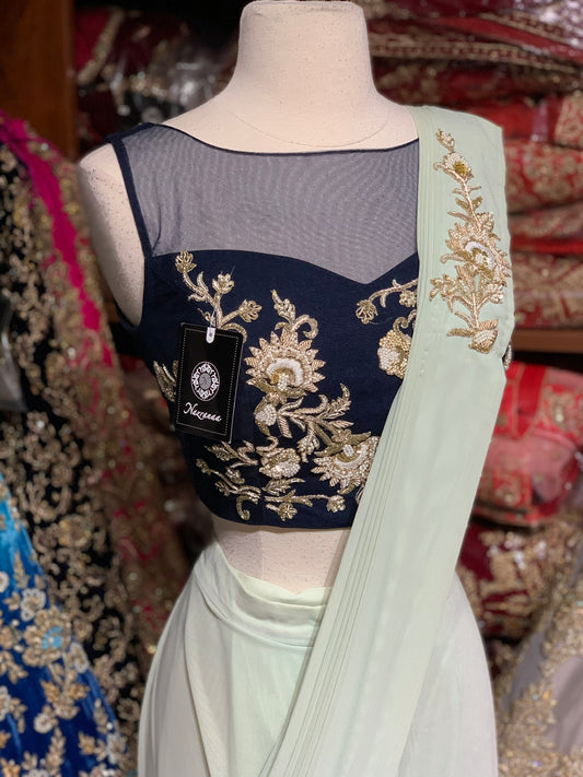 Mint Pre-Stitched Saree W/ Readymade Blouse