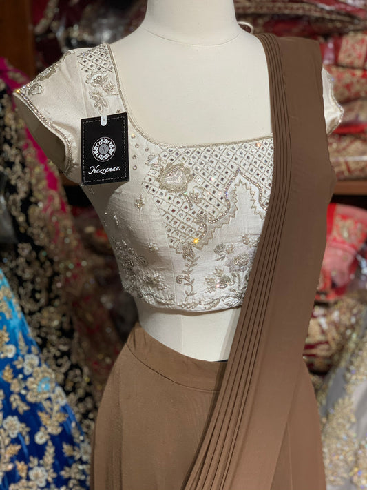 Brown Pre-Stitched Saree W/ Readymade Blouse PSS-14