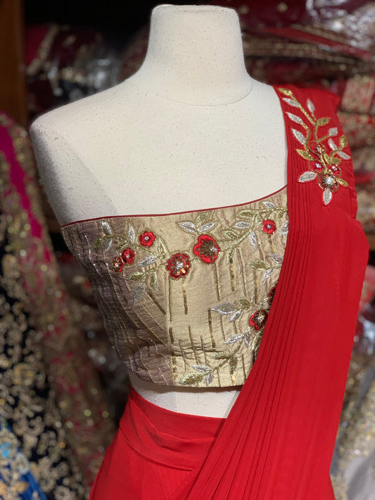 Red Pre-Stitched Saree W/ Readymade Blouse