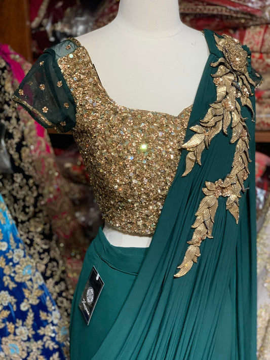 Green Pre-Stitched Saree W/ Readymade Blouse PSS-15