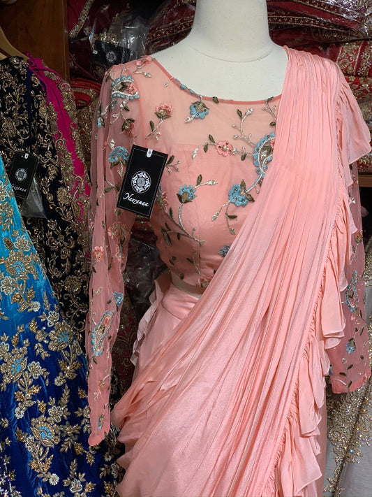 Blush Pre-Stitched Ruffle Saree W/ Readymade Blouse PSS-7