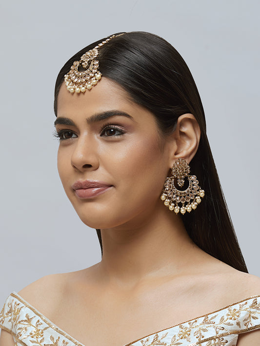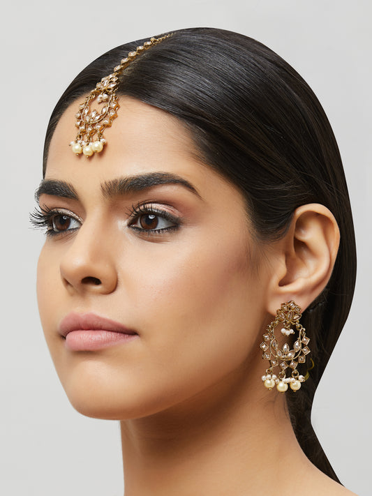 Kundan Pearl Earring with Mang Tikka ETD5