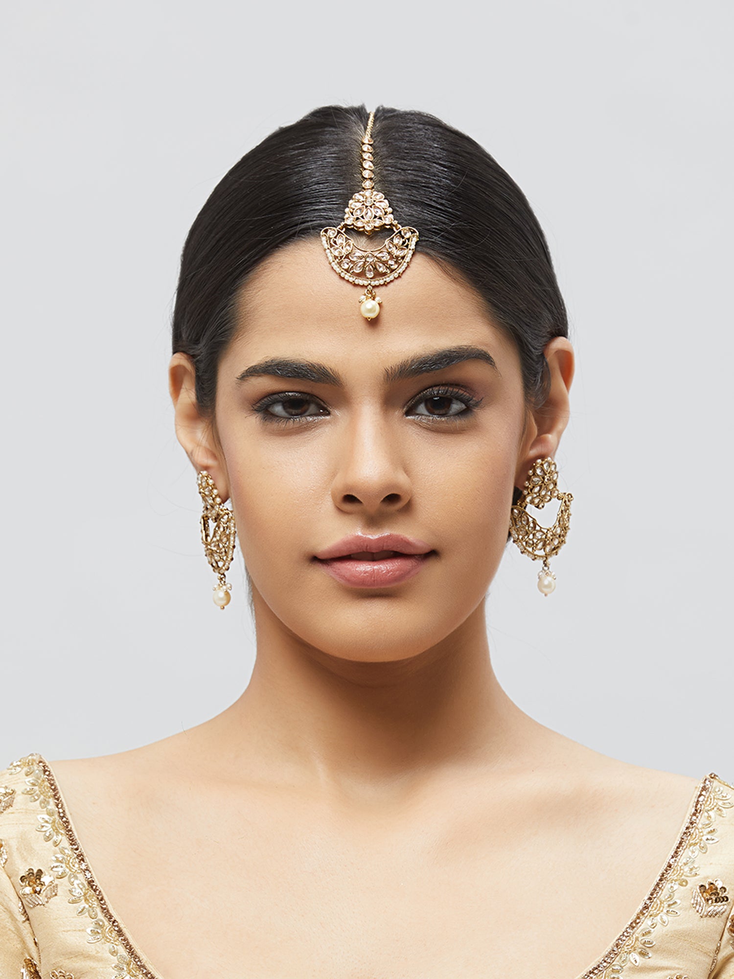 Kundan Pearl Earring with Mang Tikka ETD1