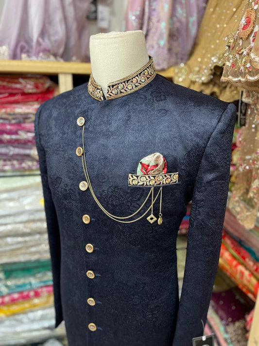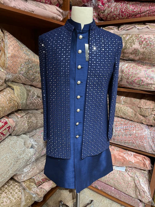 Sold outNavy blue Sherwani A4-S8