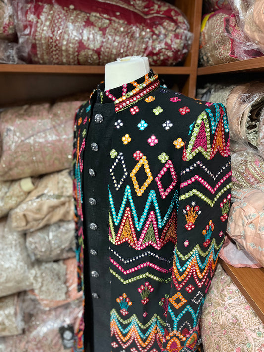 Midnight Blue Mirror Embroidered Sherwani-S13-403