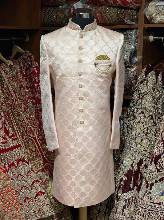 Dusky Pink Resham Thread Embroidered Sherwani- S1357