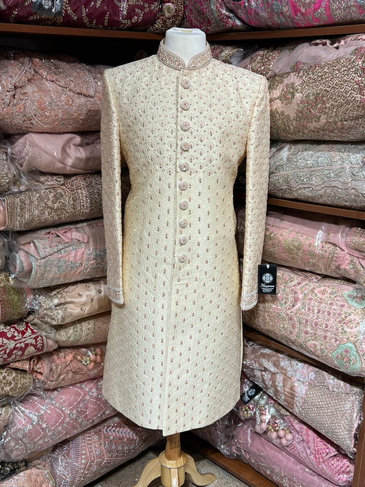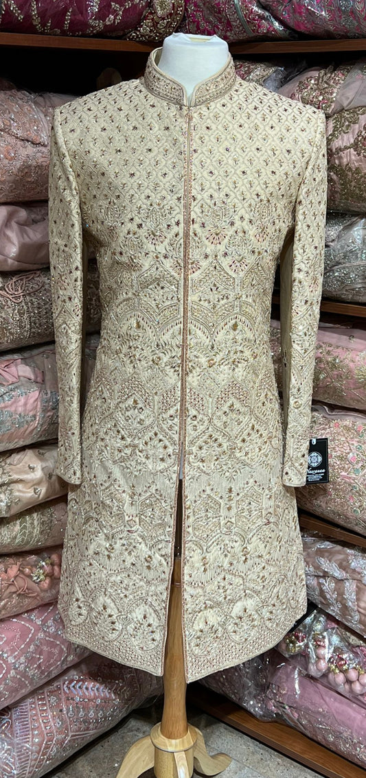 Beige Cream Thread Embroidered Sherwani- R14-N48