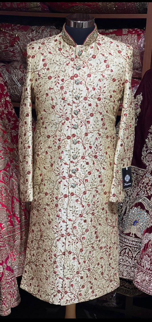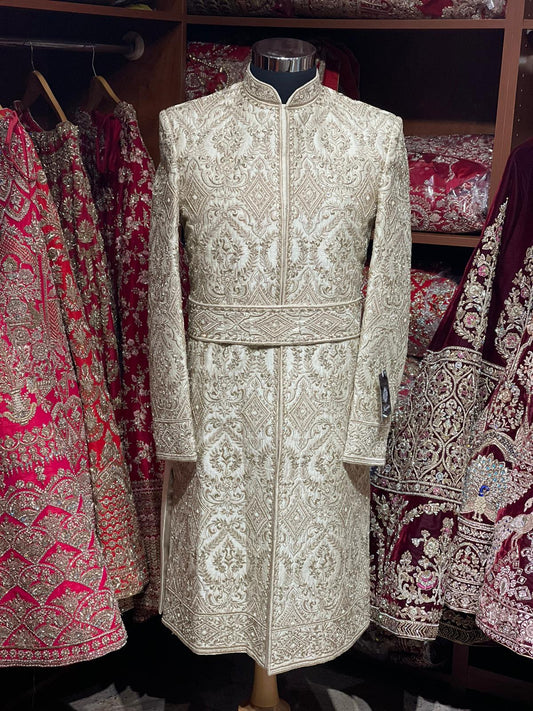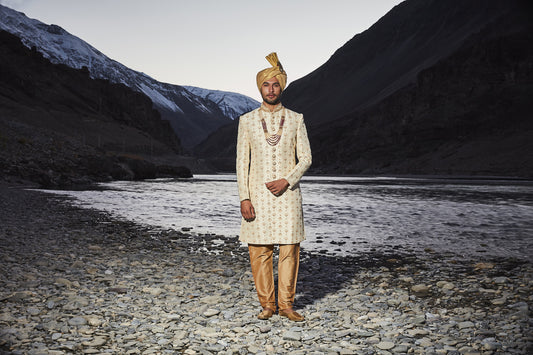 Cream Resham Embroidered Royal Sherwani- 921
