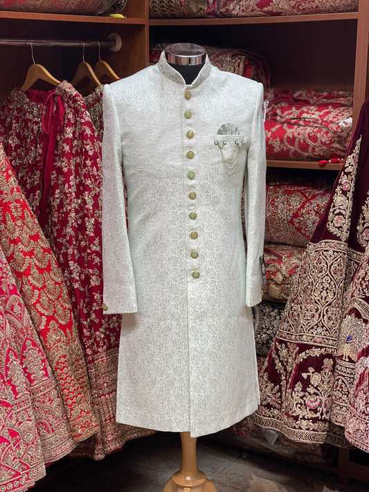 Sold outTea Green Woven Sherwani- 1273