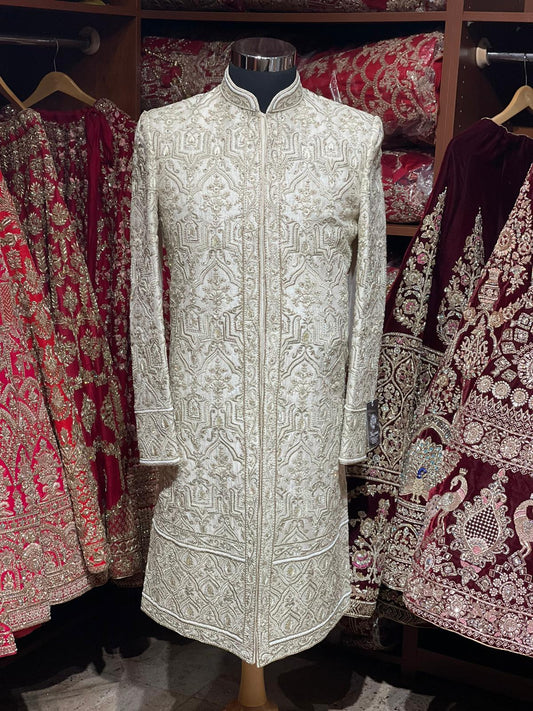 Off White Zardozi Embroidered Sherwani -6209