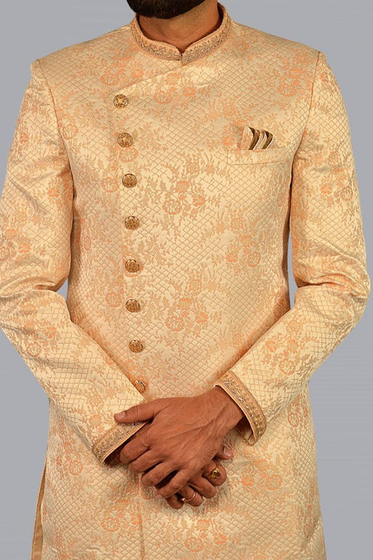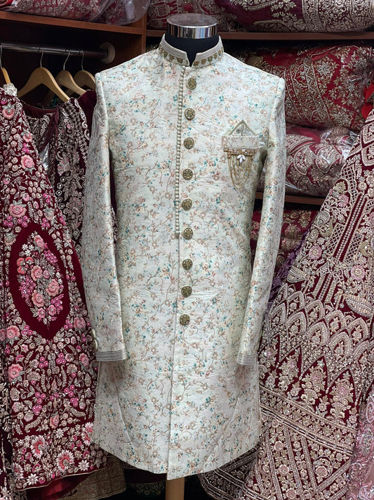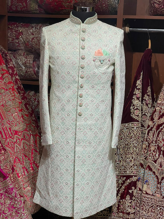 Tea Green Multithreaded Embroidered Sherwani- S1299