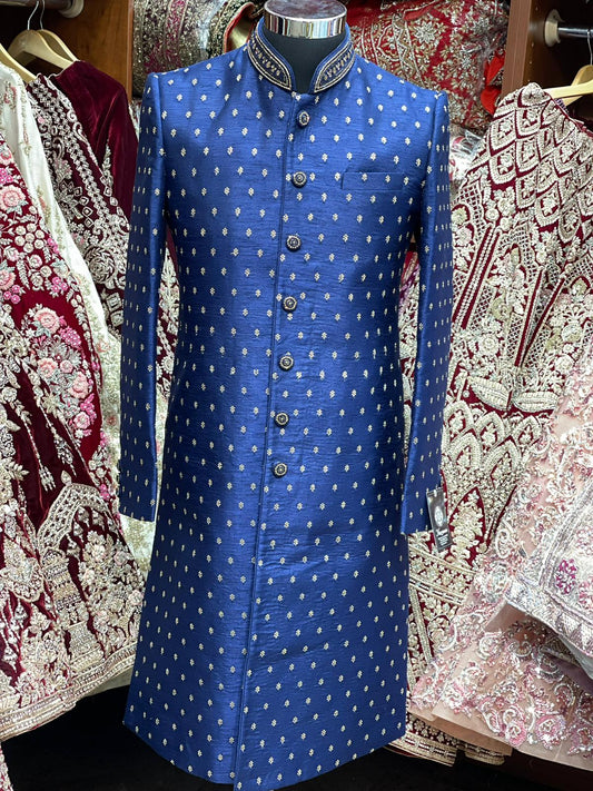 Regal Blue Resham Thread Embroidered Sherwani-P10-S38