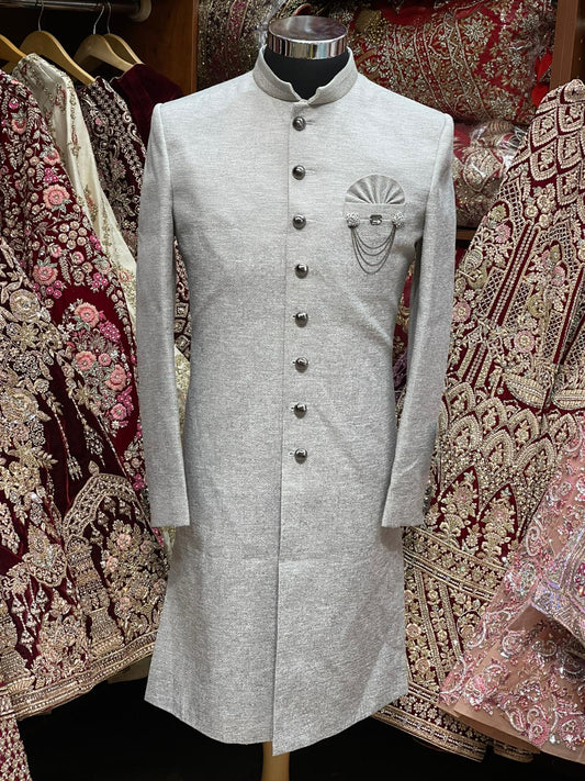 Sold outSilver Grey Rajwadi Sherwani- 1254
