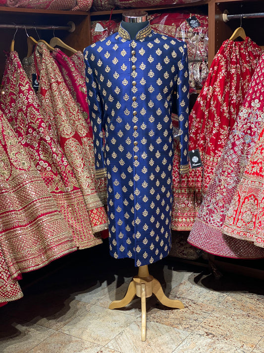 Regal Blue Embroidered Sherwani- 1189