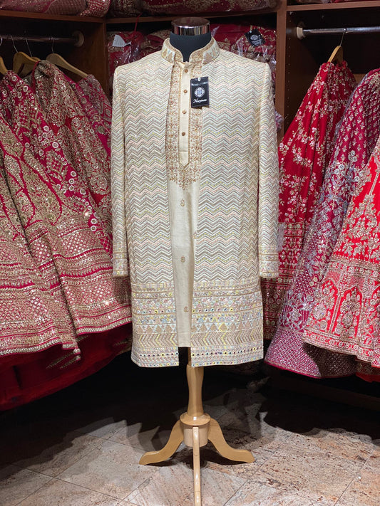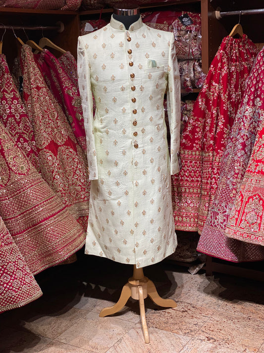 Sold outSoft Cream Wedding Sherwani- 9618