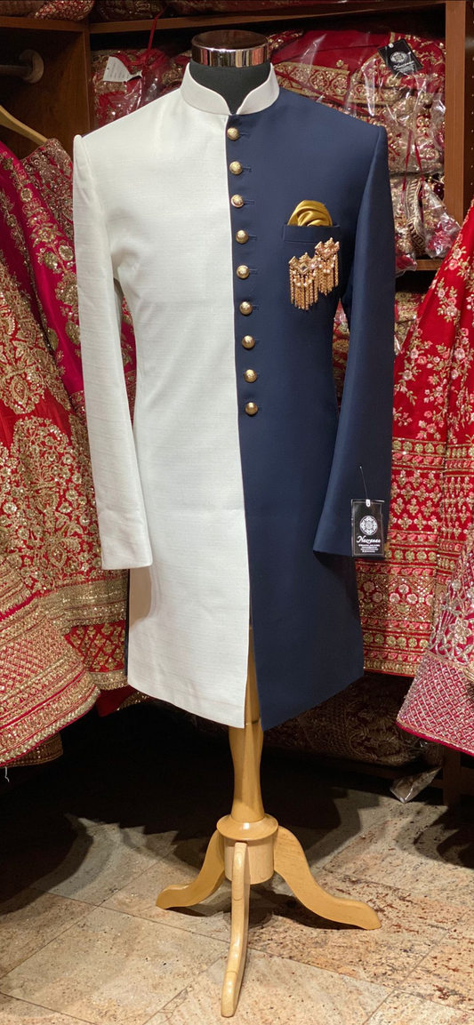 2 Tone White & Regal Blue Prince Sherwani-S28-N10