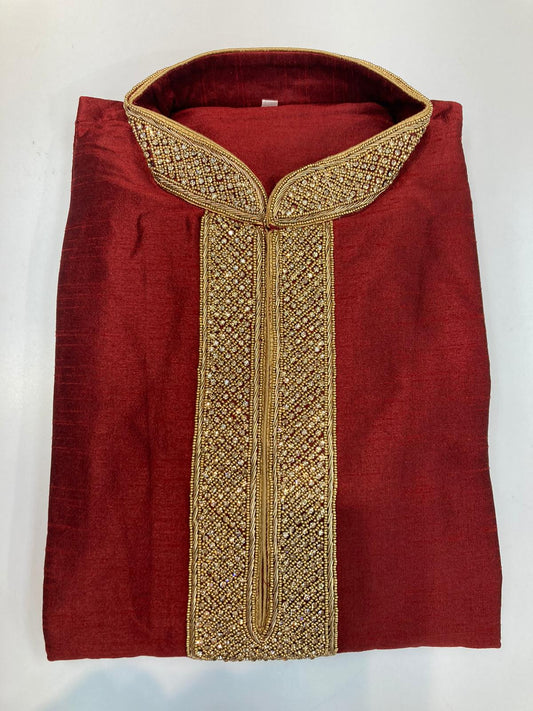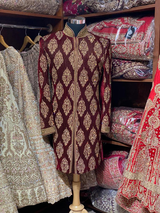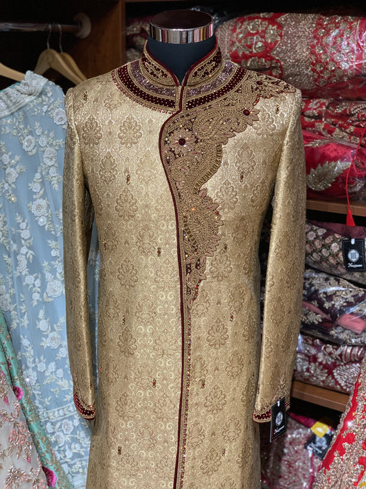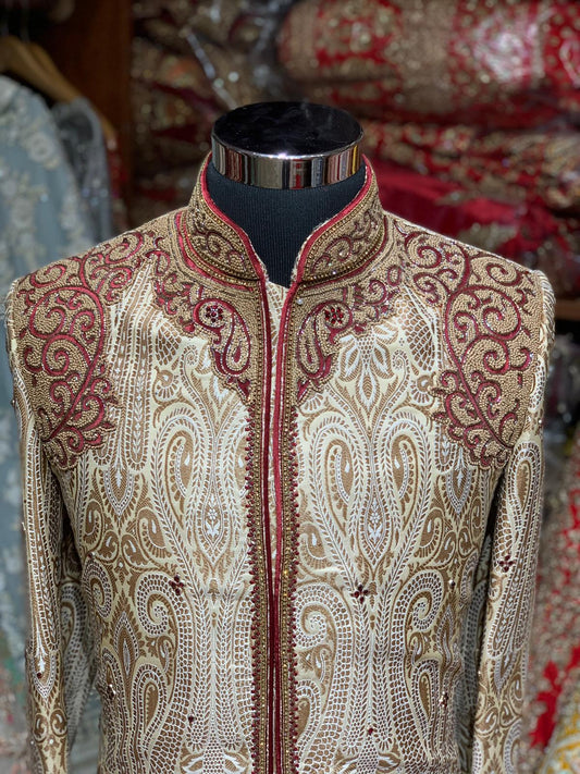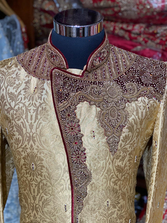 Sold outGold Maroon Size 40 Wedding Sherwani