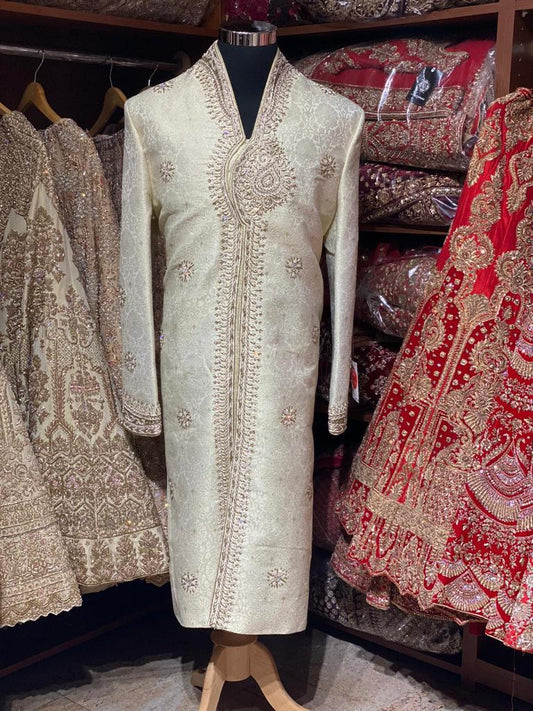 Sold outWhite Brocade Groom Size 38 Sherwani