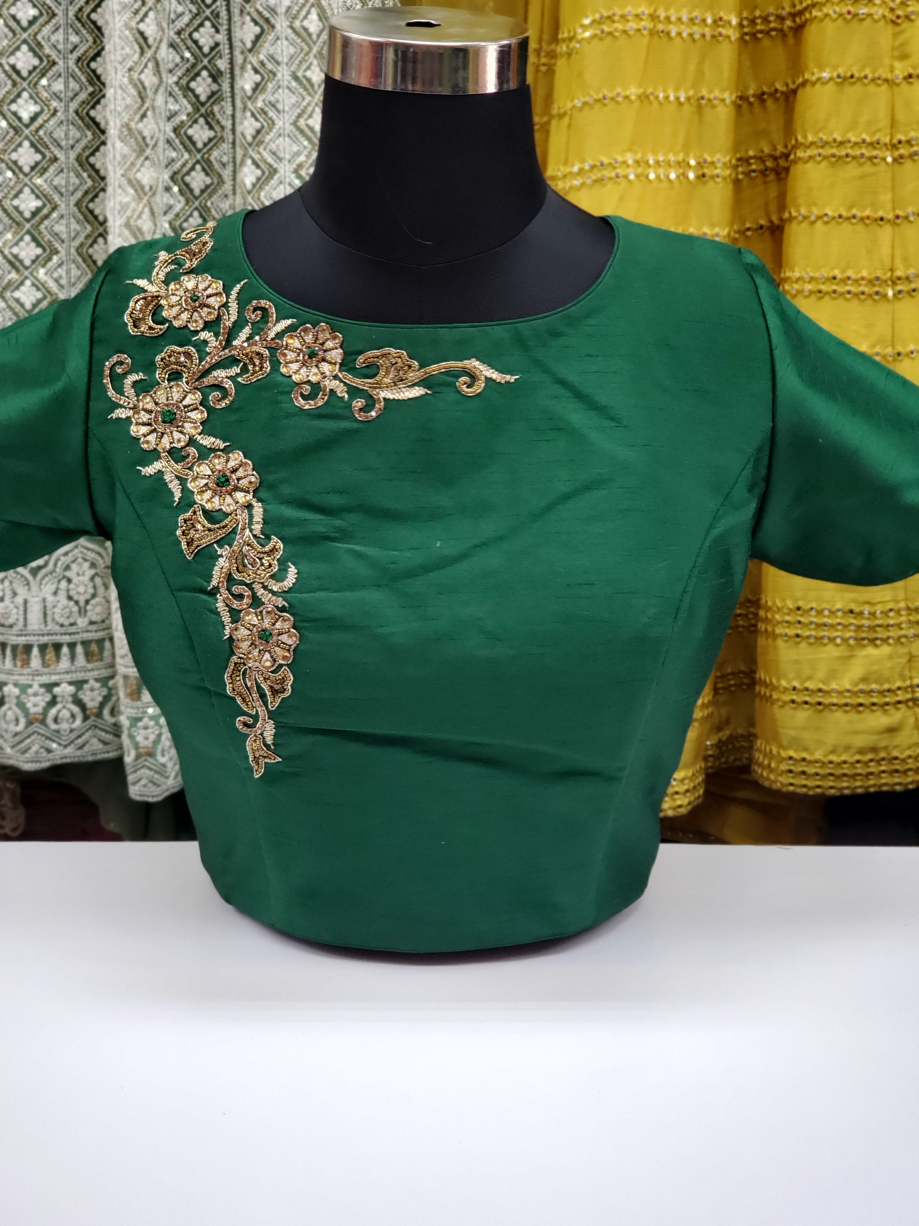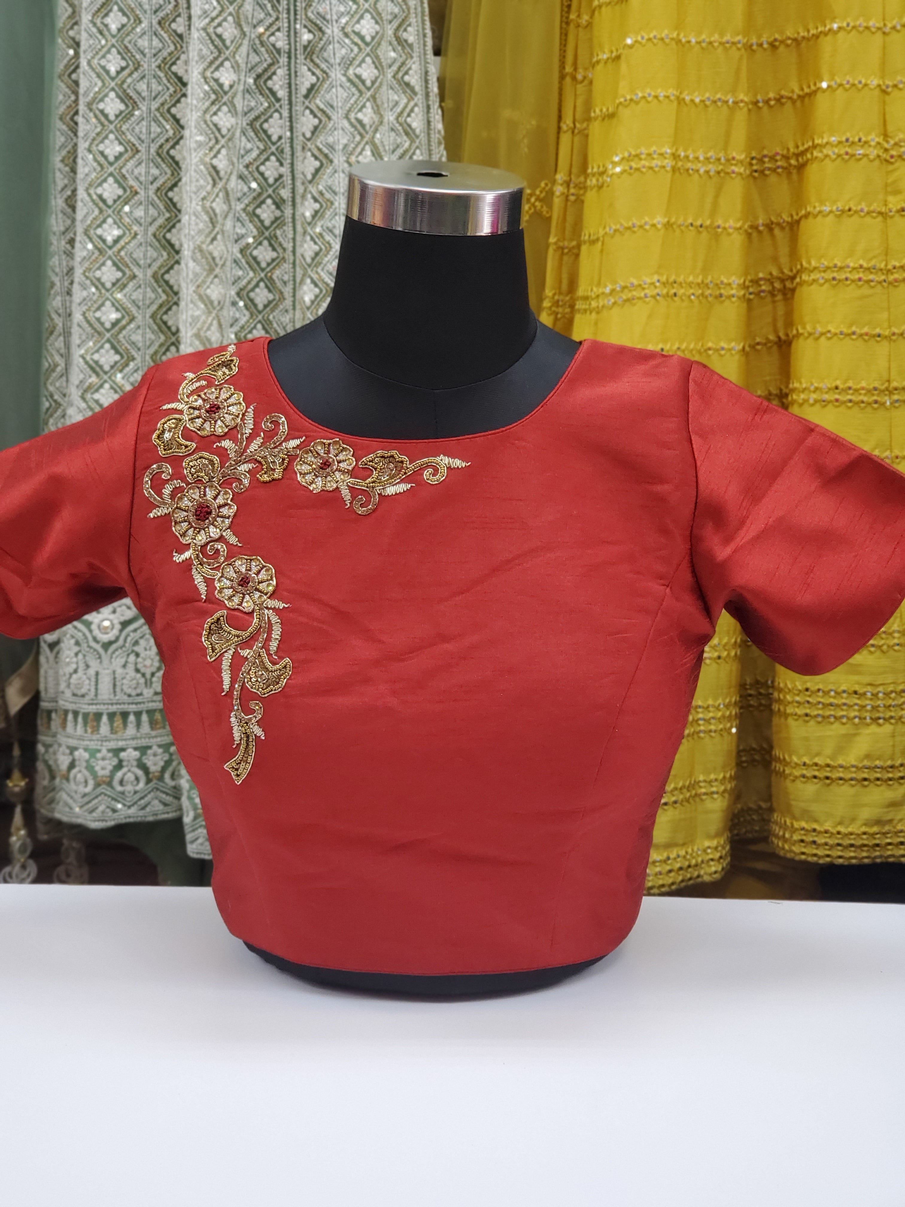 Fancy Raw Silk Stone Work Blouse R1S23