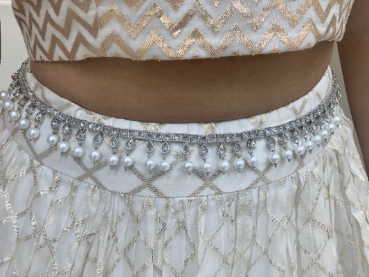 Silver waistbelt with white pearl accents, Indian silver stone bellychain, Wedding accessories ,Pakistani wedding jewelry