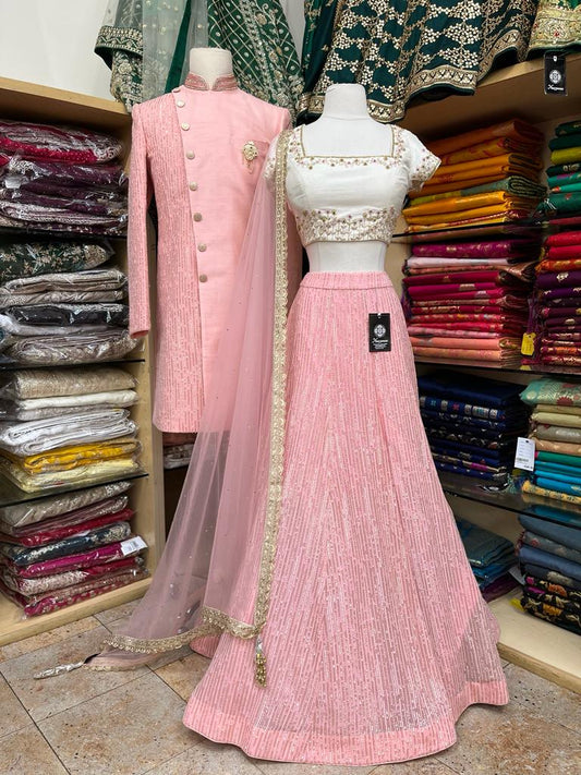 Shia and Shashank are truly amazing at what they do - their attention to detail and expertise in the fabrics, latest styles, customer service, communication, and coordination for alterations/fittings were FLAWLESS. I had an American/Indian wedding with the entire wedding party wearing matching outfits, with customizations for both the bridesmaids and groomsmen. I also bought my lehenga and jewelry with Nazranaa, and they ensured everything matched and looking picture perfect. My husband also got her sherwani with Nazranaa, and the colors of his outfit complimented my outfit so well. All of our wedding guests were raving about our clothes, and we could not have asked for a better experience. Highly recommend for multi-cultural weddings - they are so accepting and inclusive and work well with people of all backgrounds.