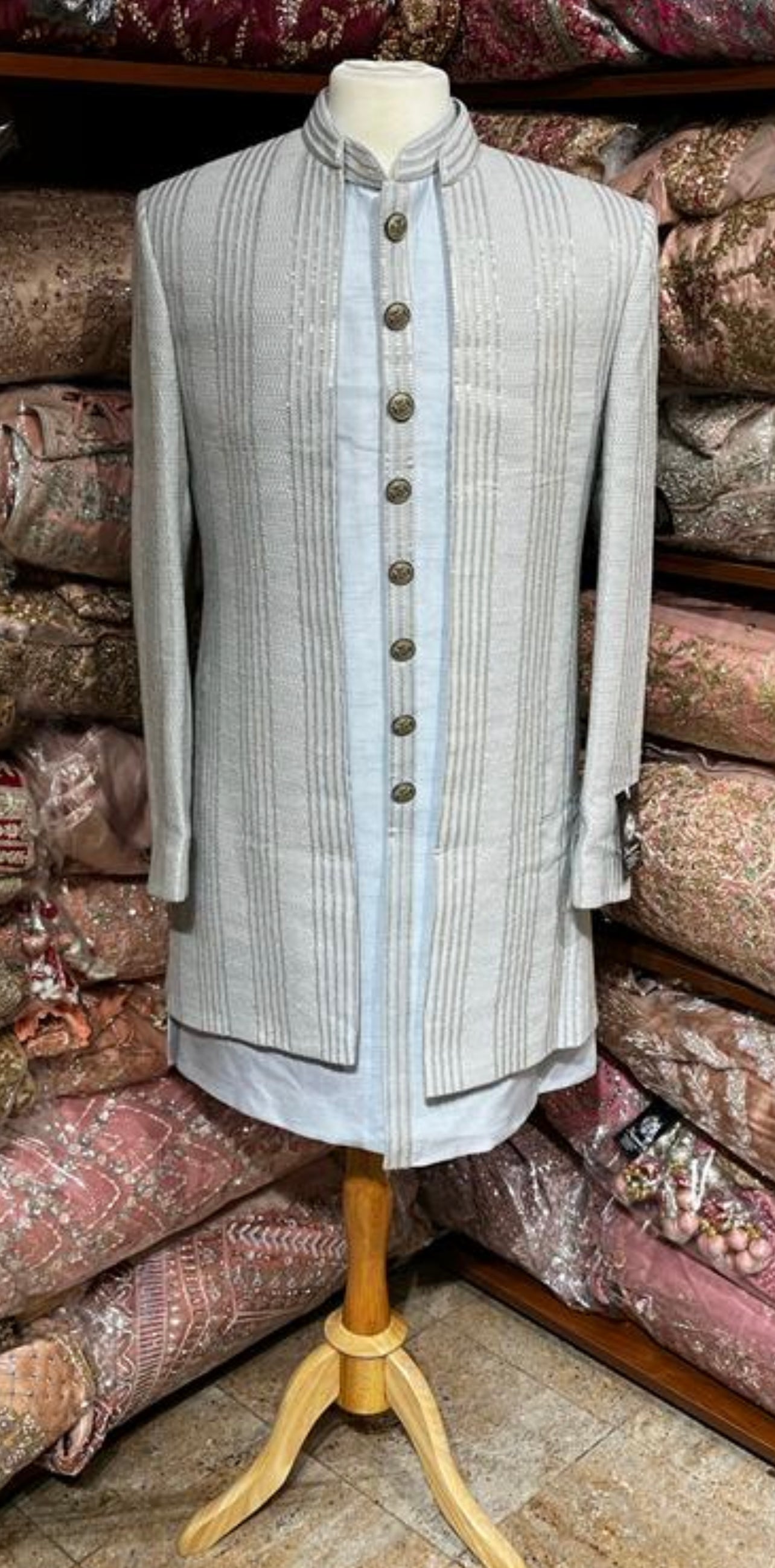 Rajwadi Cream Thread Embroidered Sherwani-R14-N43