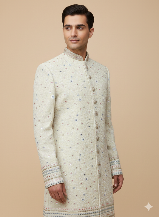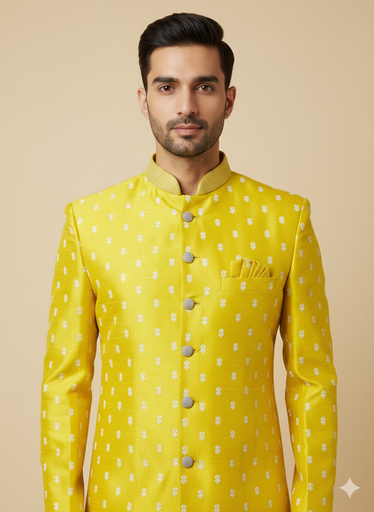 Mustard Yellow Thread Embroidered Sherwani- M1033