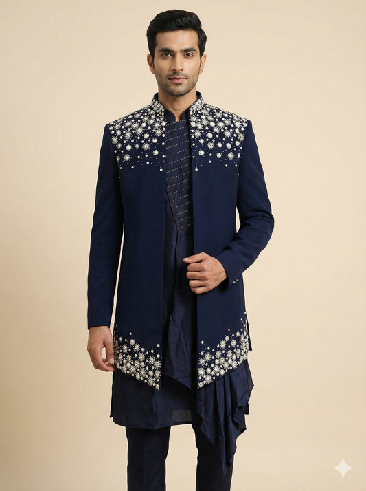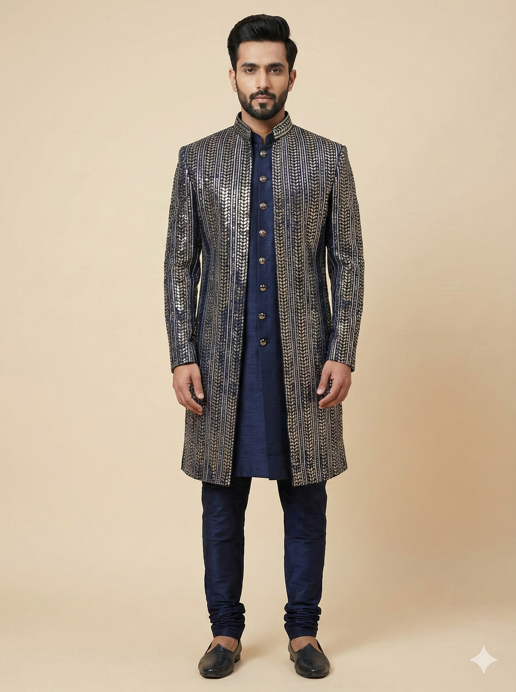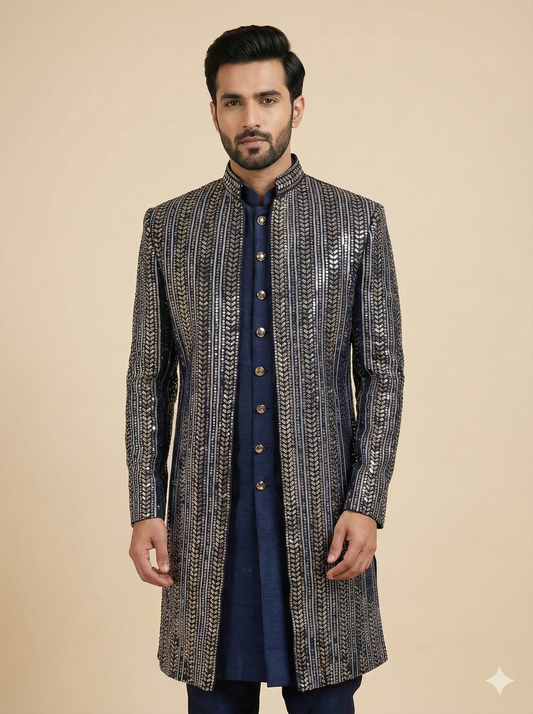 Navy Blue Sequence Embroidered Sherwani-R14-N83