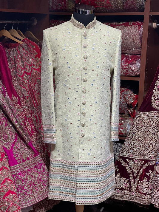 Mustard Yellow Thread Embroidered Sherwani- M1033