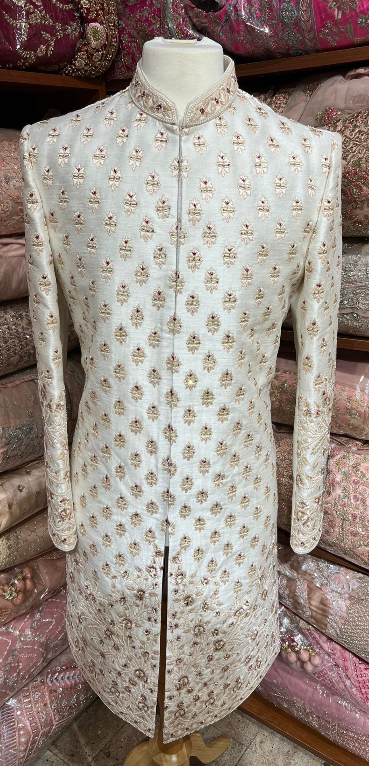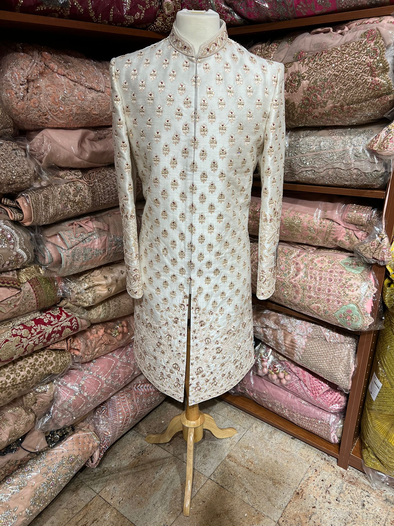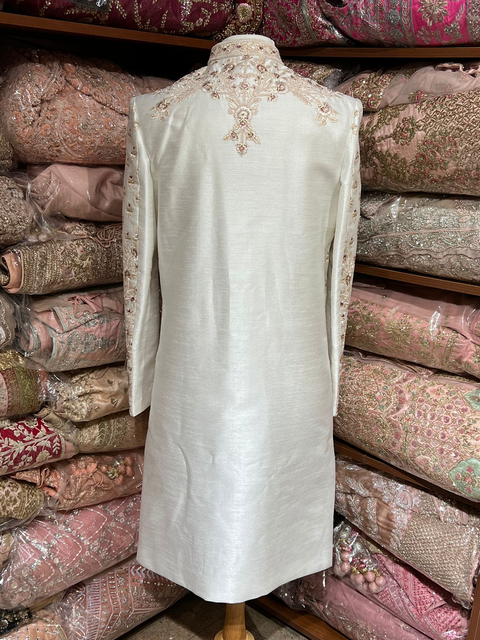 Beige Cream Thread Embroidered Sherwani- R14-N48