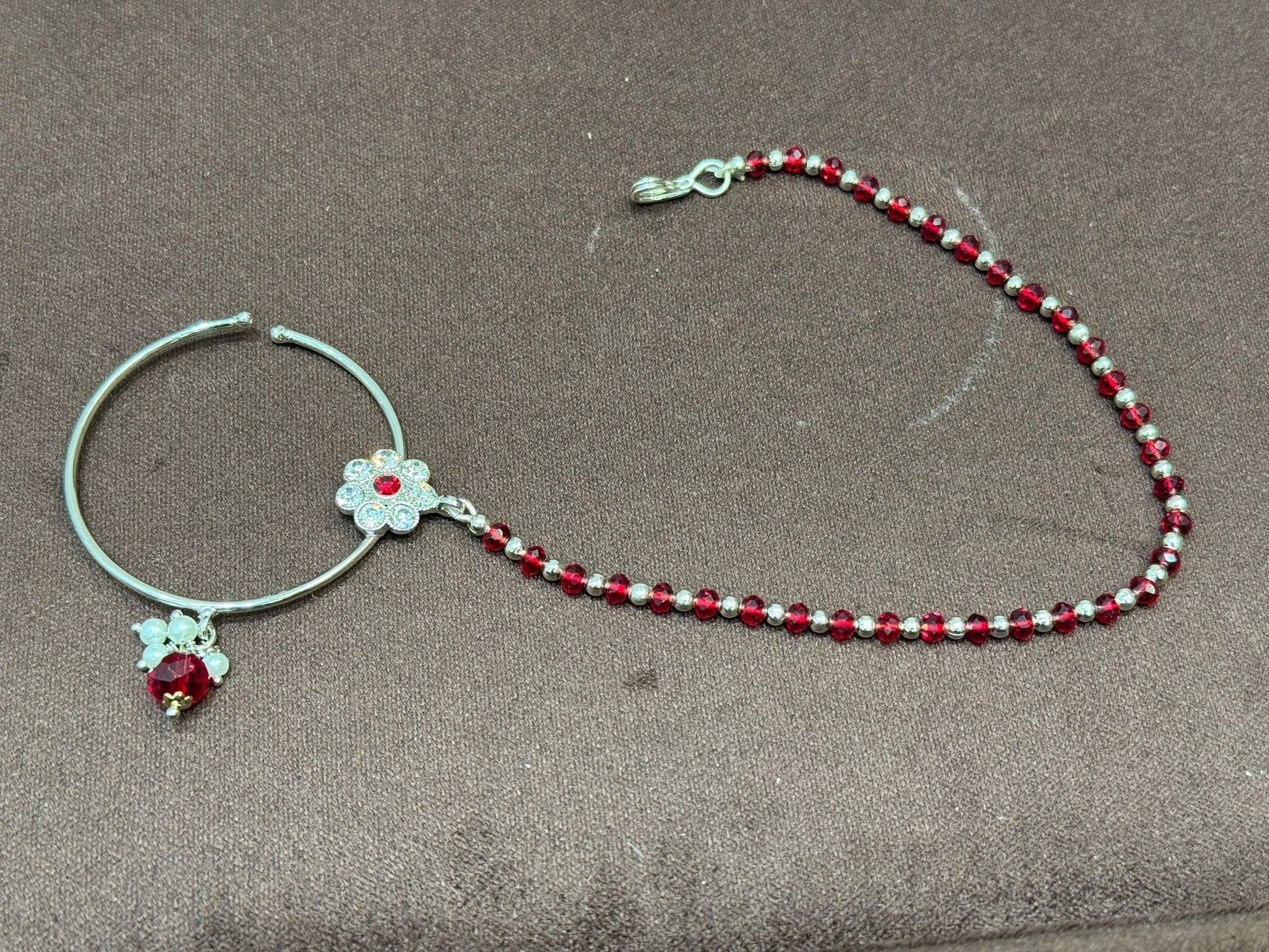 Color Silver Ryan Stone With White Peals And Maroon Beads