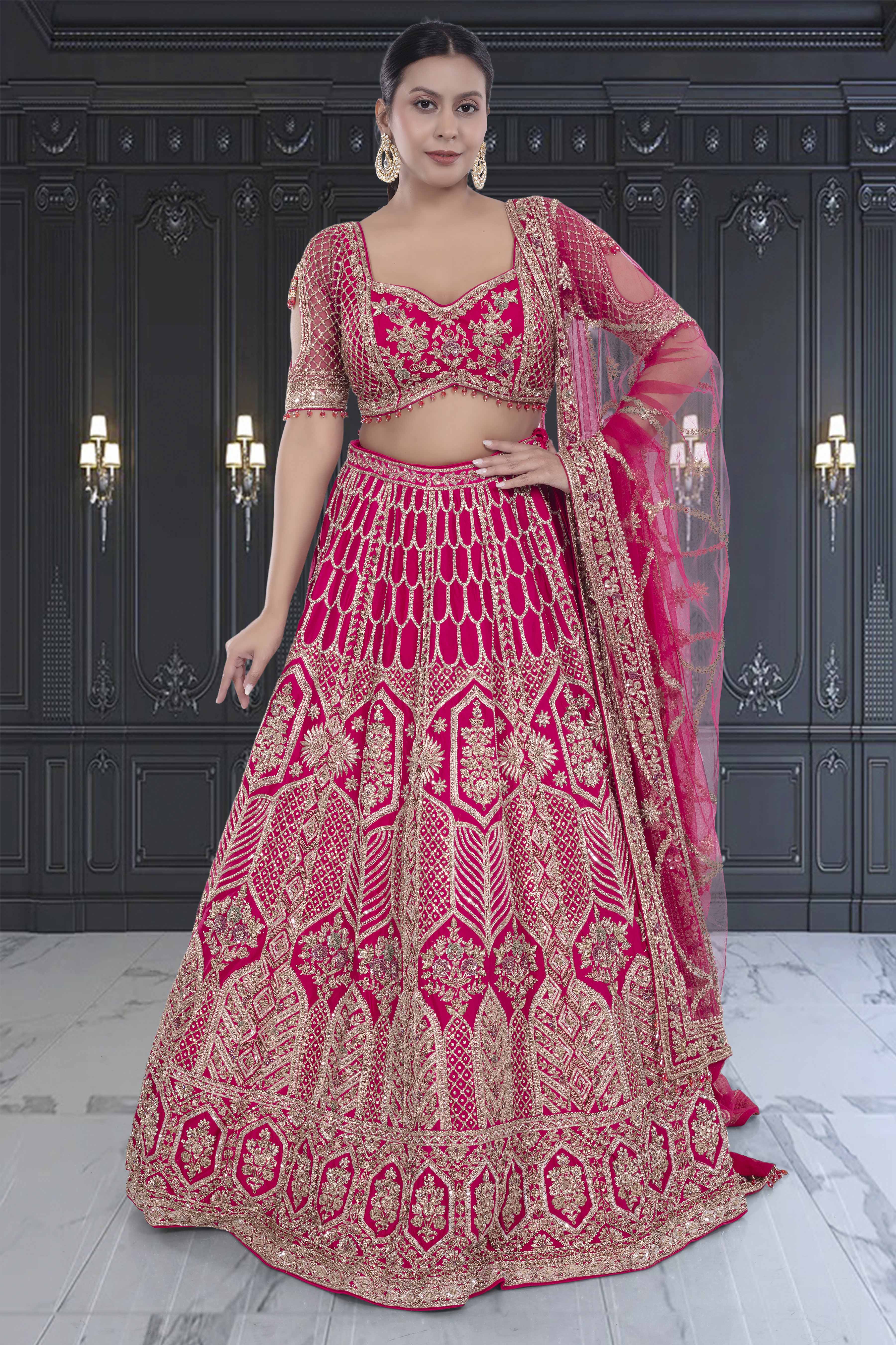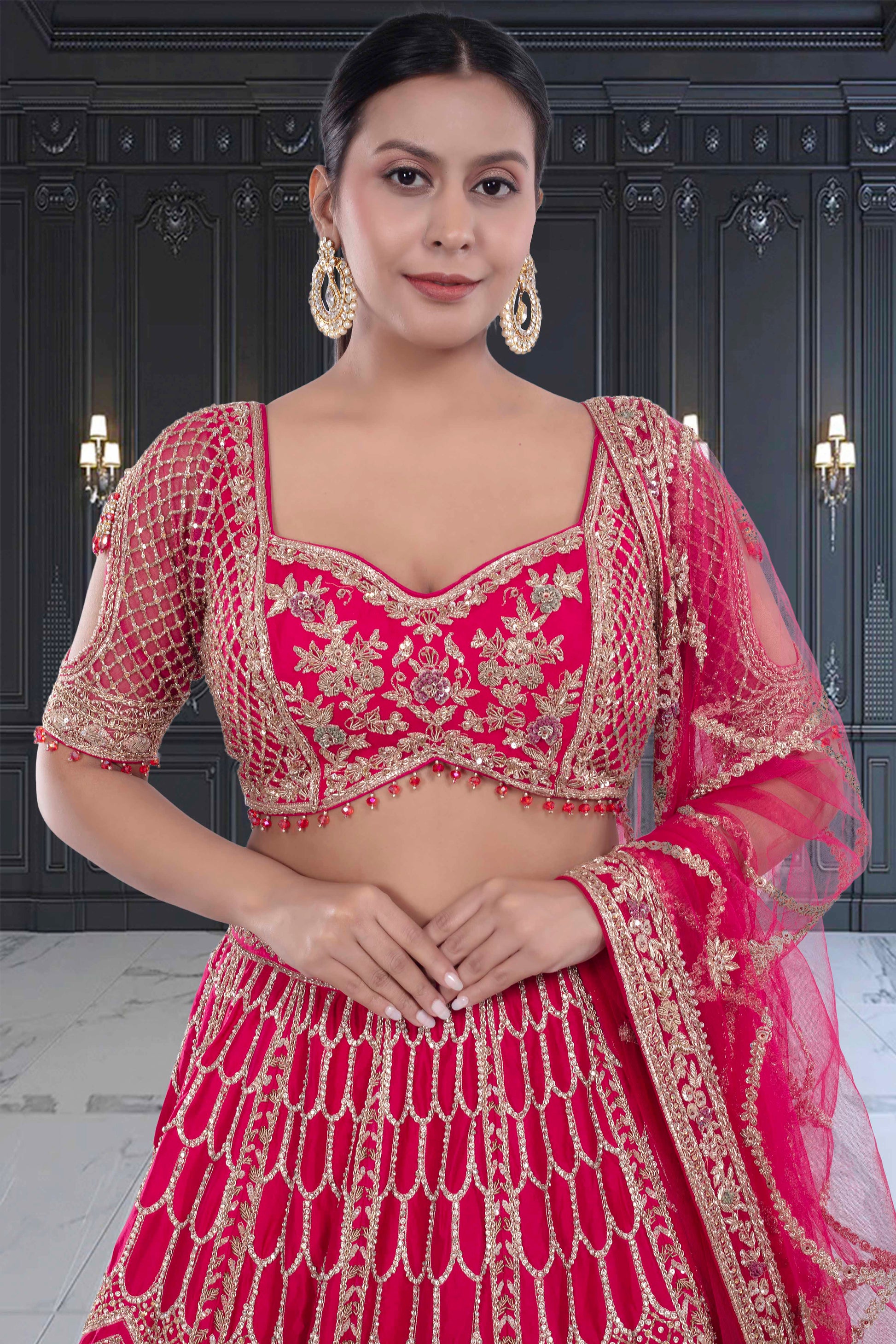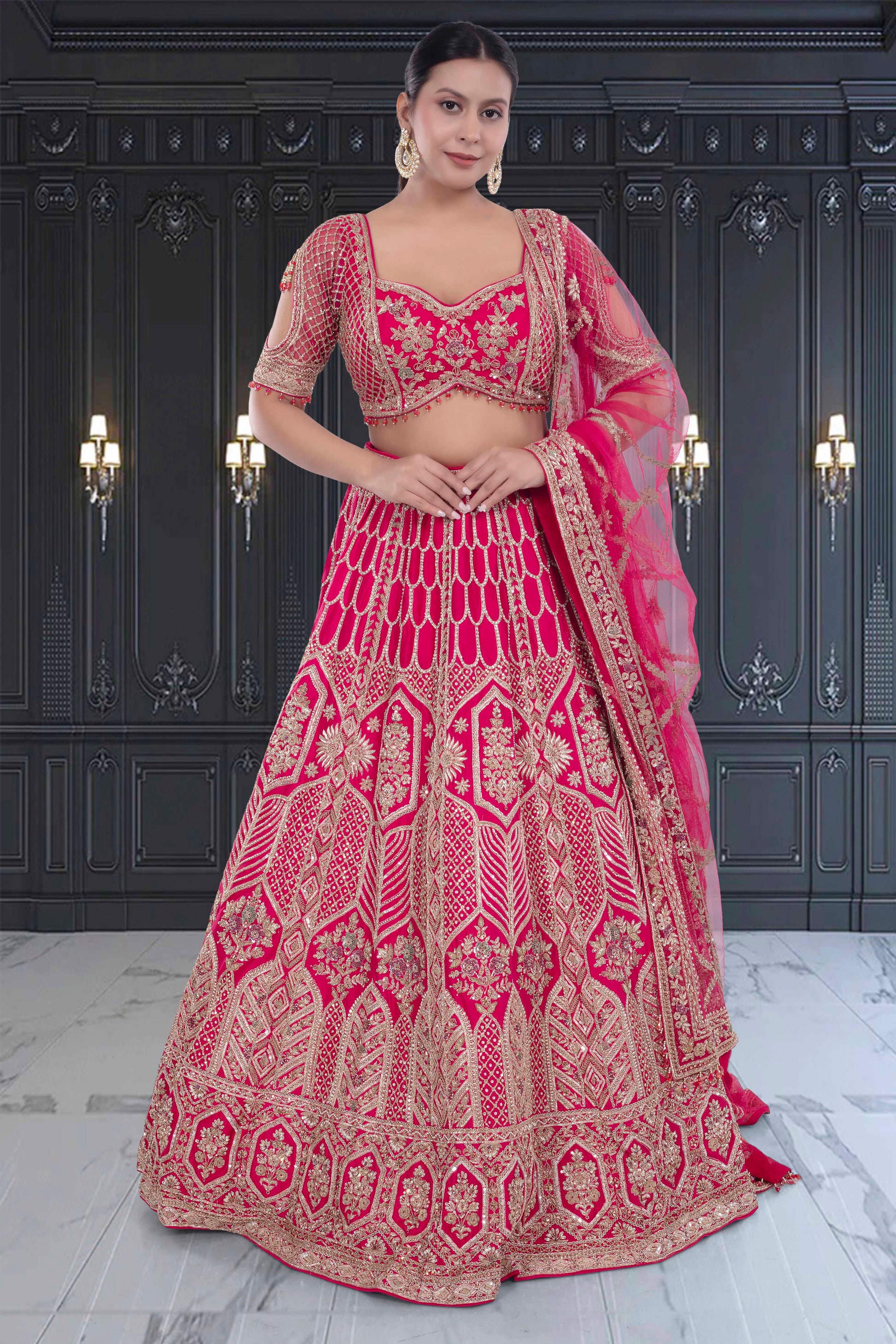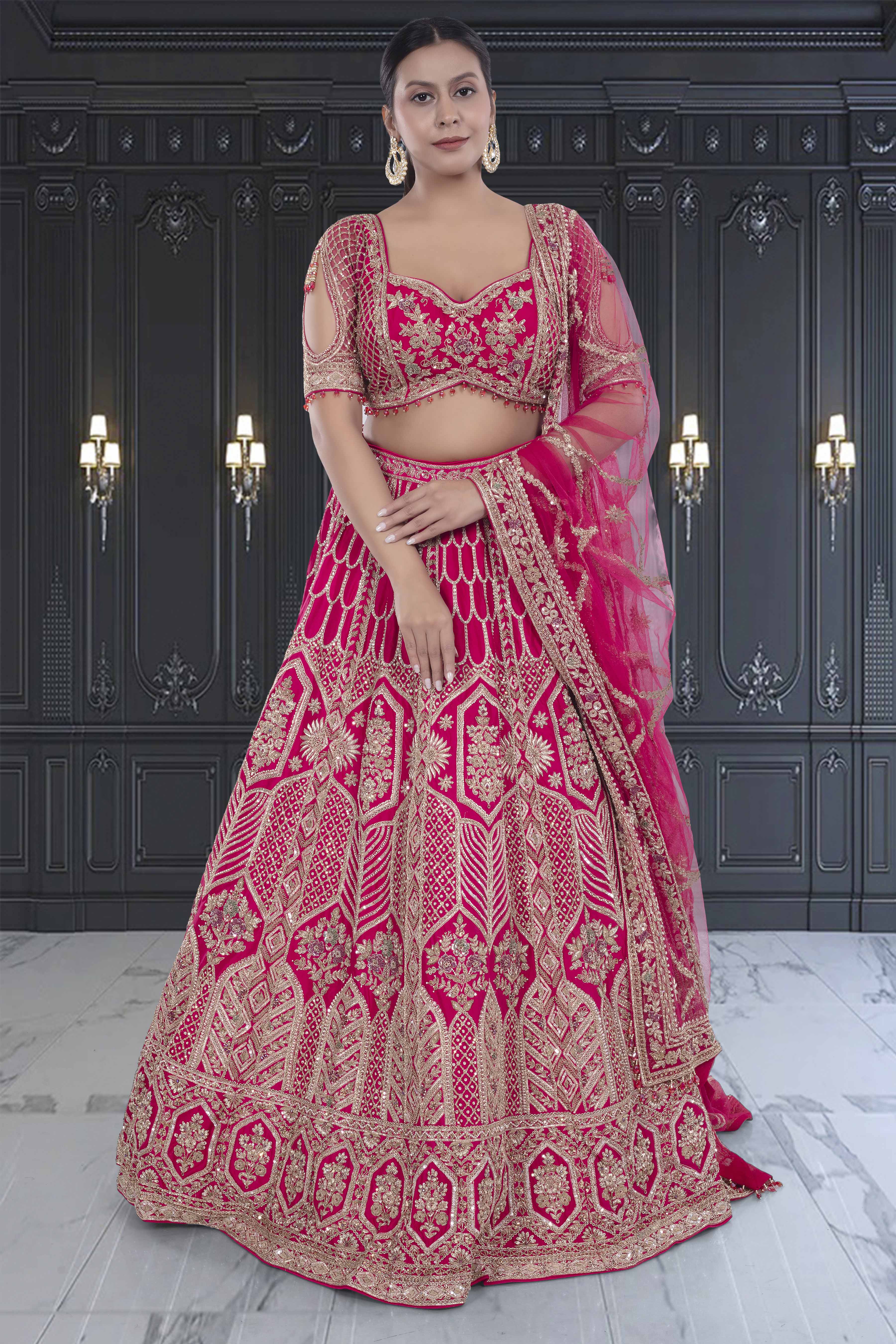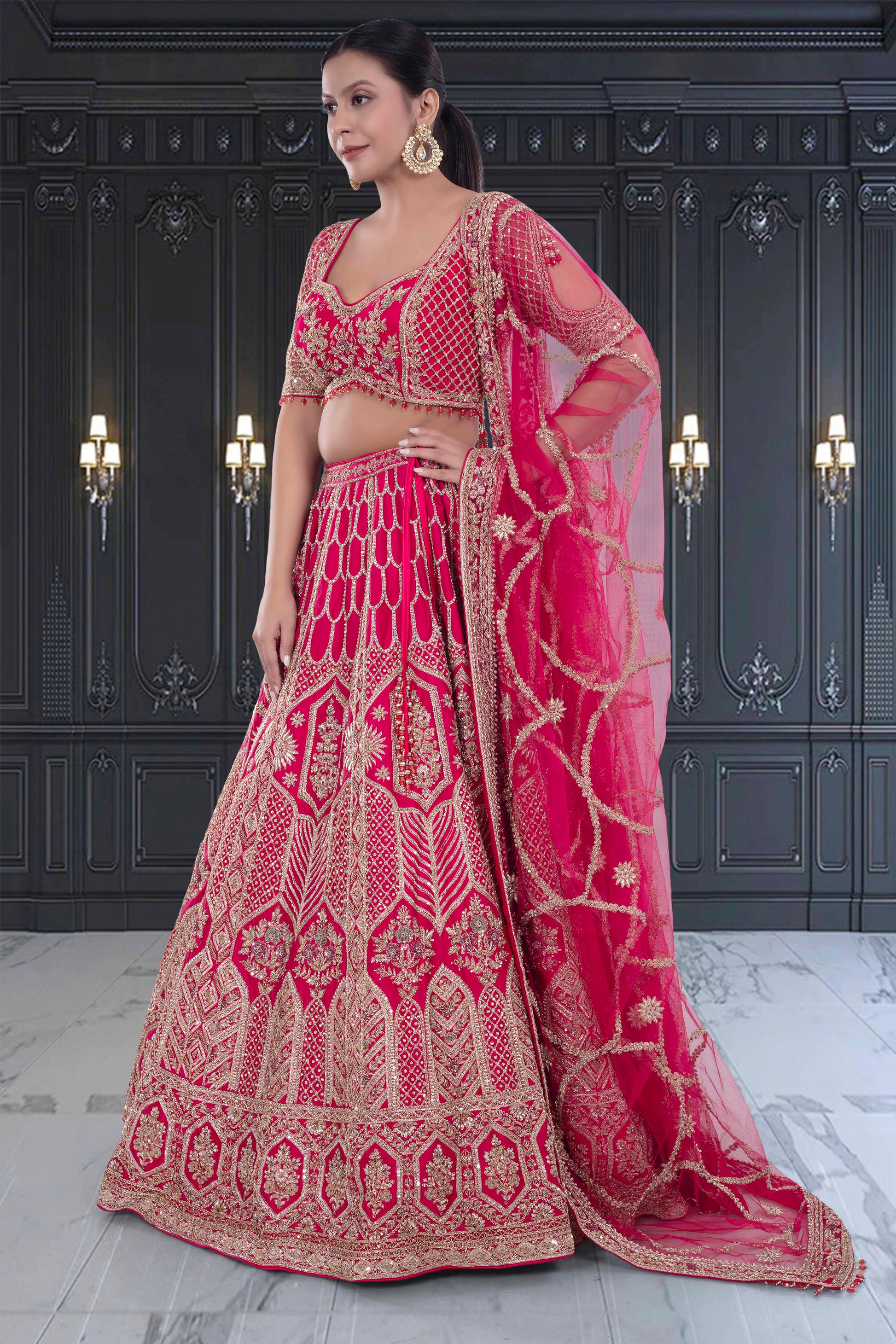 This Bridal Lehenga BL-283 is a stunning choice for your special day. The rich red color is complemented by intricate gold embroidery, adding a touch of elegance and luxury. Made with quality materials, this lehenga is sure to make you feel confident and beautiful as you celebrate your wedding.