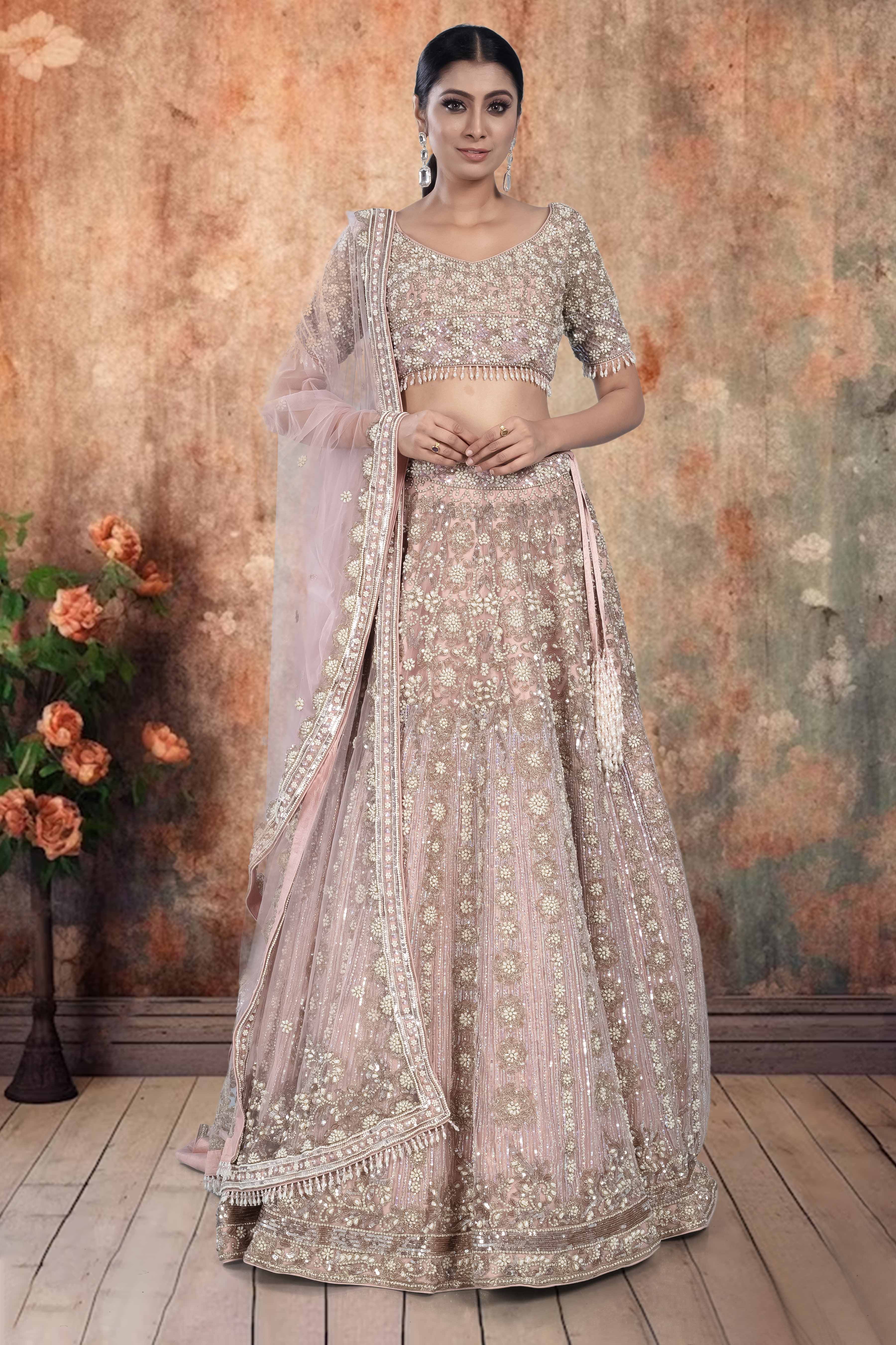 Expertly crafted, the Bridal Lehenga BL-291 exudes elegance and grace. The blush peach color and pearl embroidery add a touch of sophistication, making it the perfect choice for your reception. With a train for added drama, this lehenga is sure to make a lasting impression on your special day.