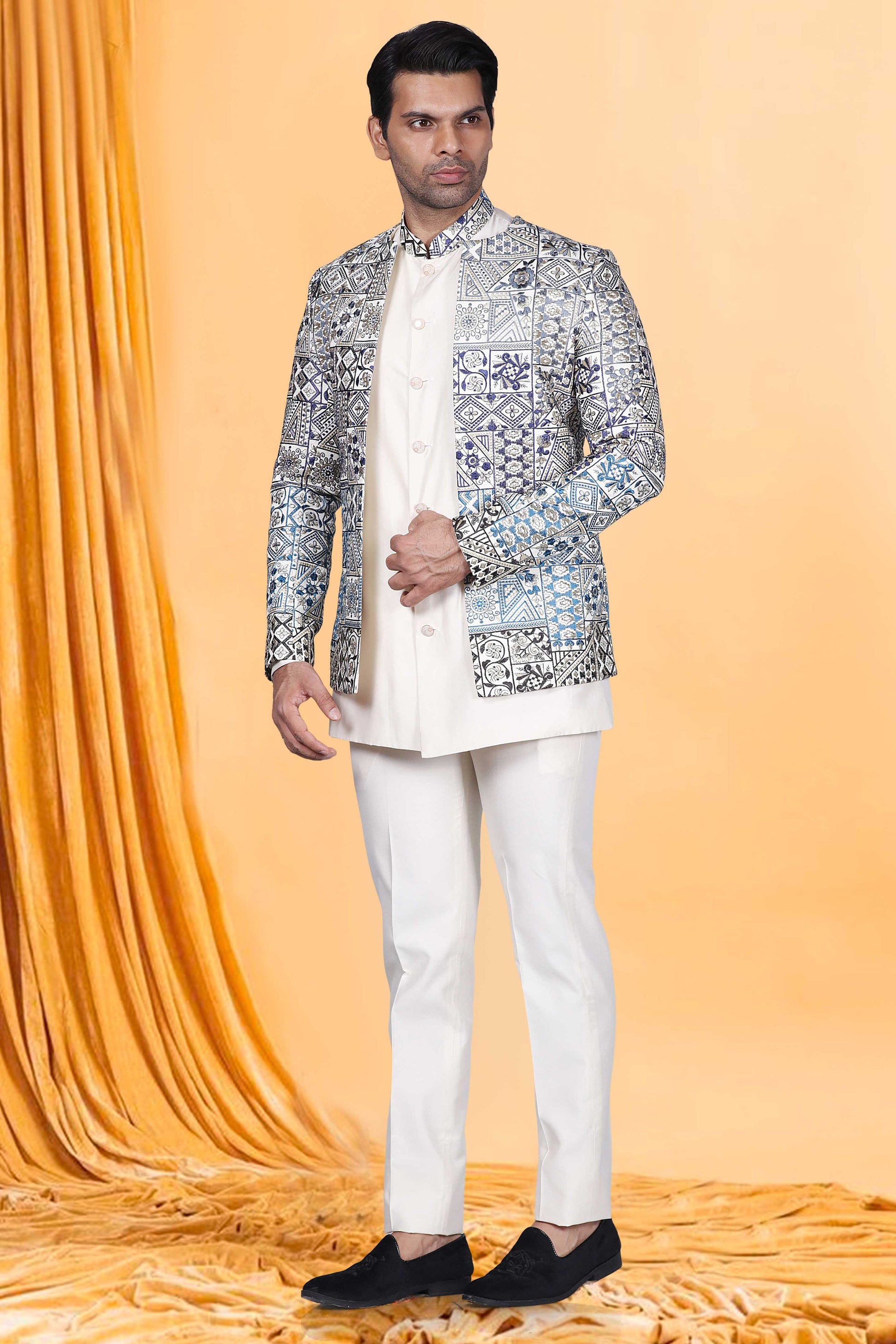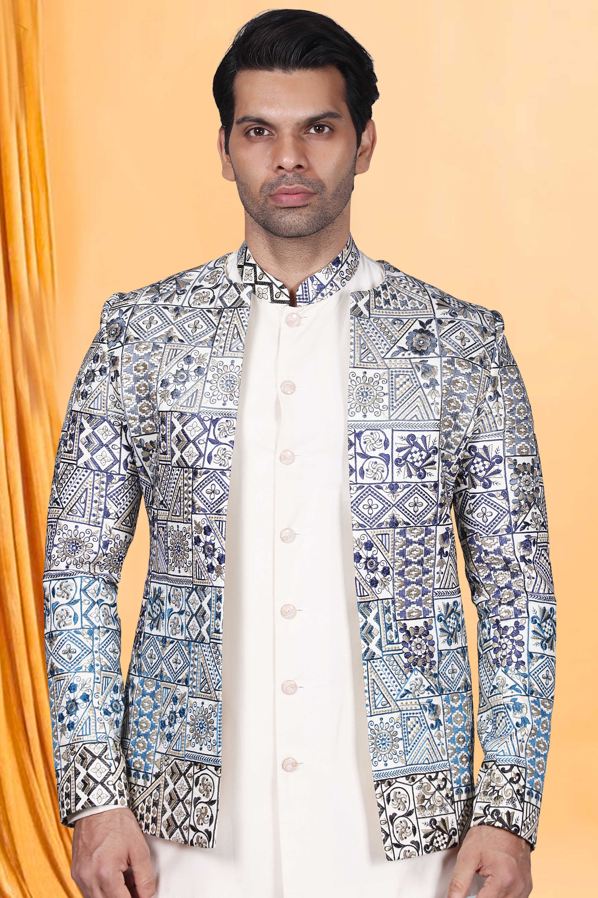 This Mens Bandhgala M42-S76 exudes sophistication with its intricate thread work and open jacket design. Crafted with luxurious materials, this piece offers a touch of exclusivity and adds a refined touch to any outfit. Elevate your style with this premium bandhgala.