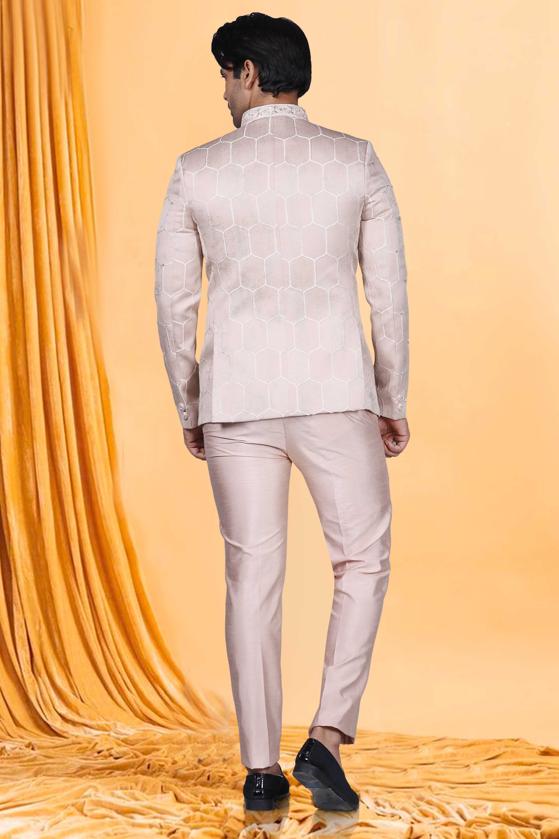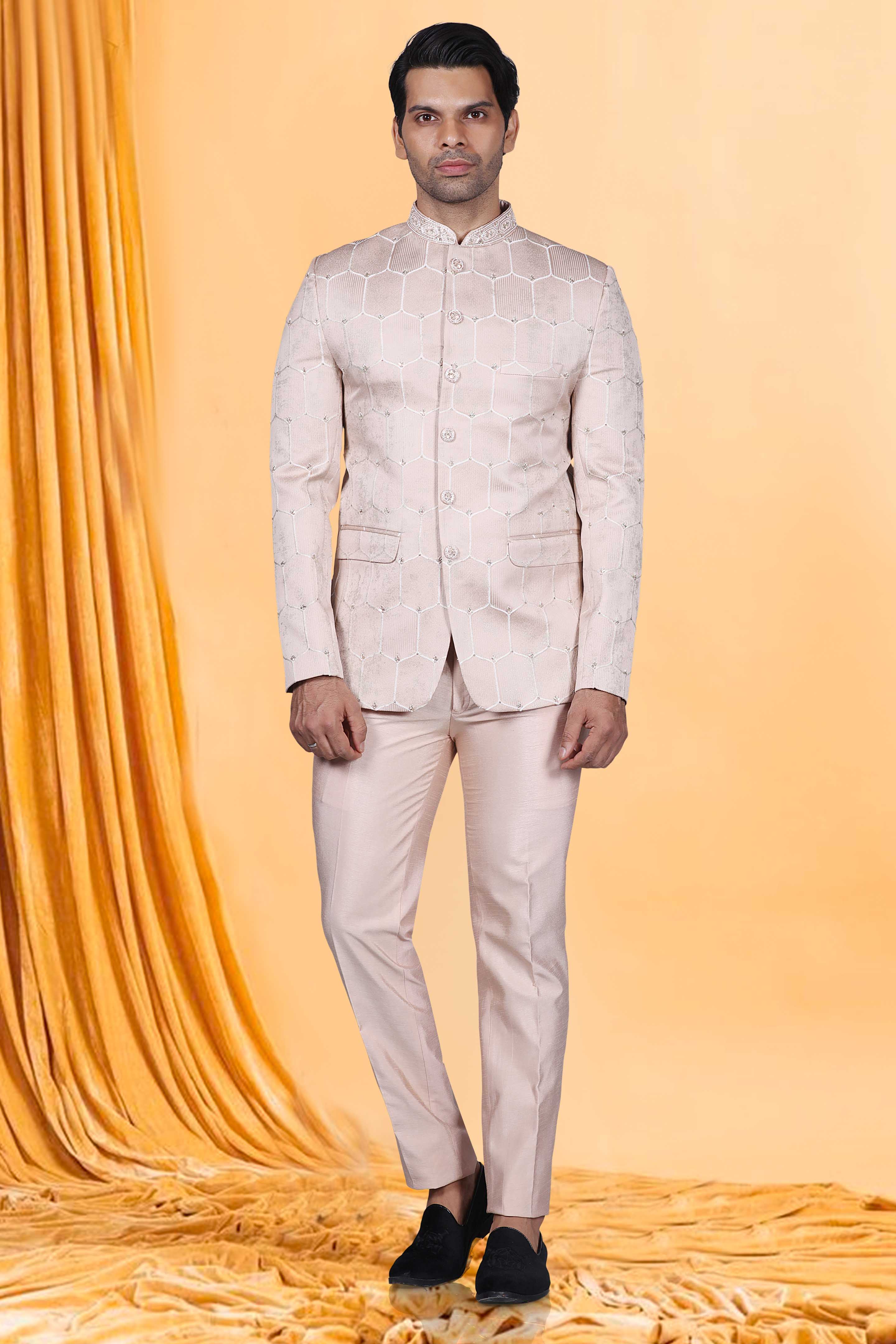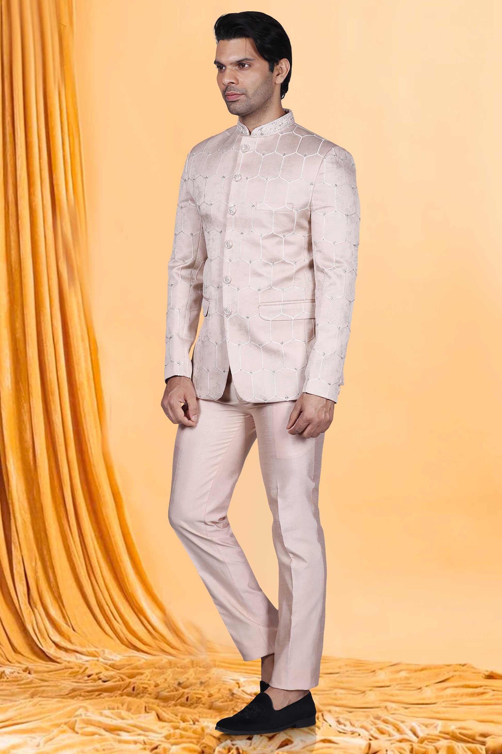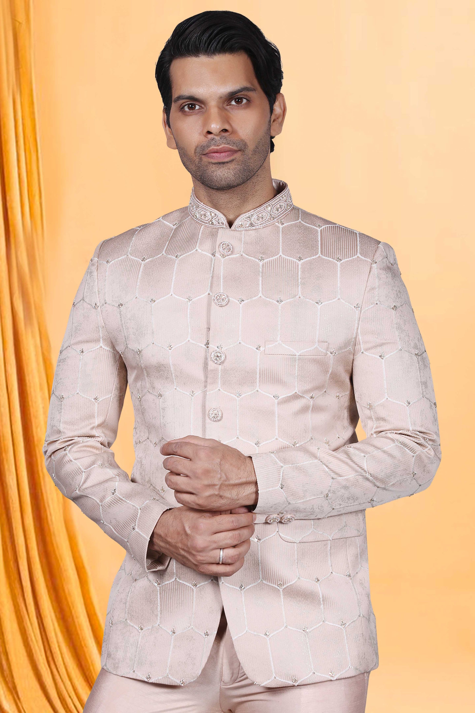 Elevate your formal wear with our Mens Bandhgala V26-S06. The intricate thread and cutdana work on the collar adds a touch of sophistication to your ensemble. Experience luxury and exclusivity in this timeless piece. Pair with tailored trousers for a complete look.