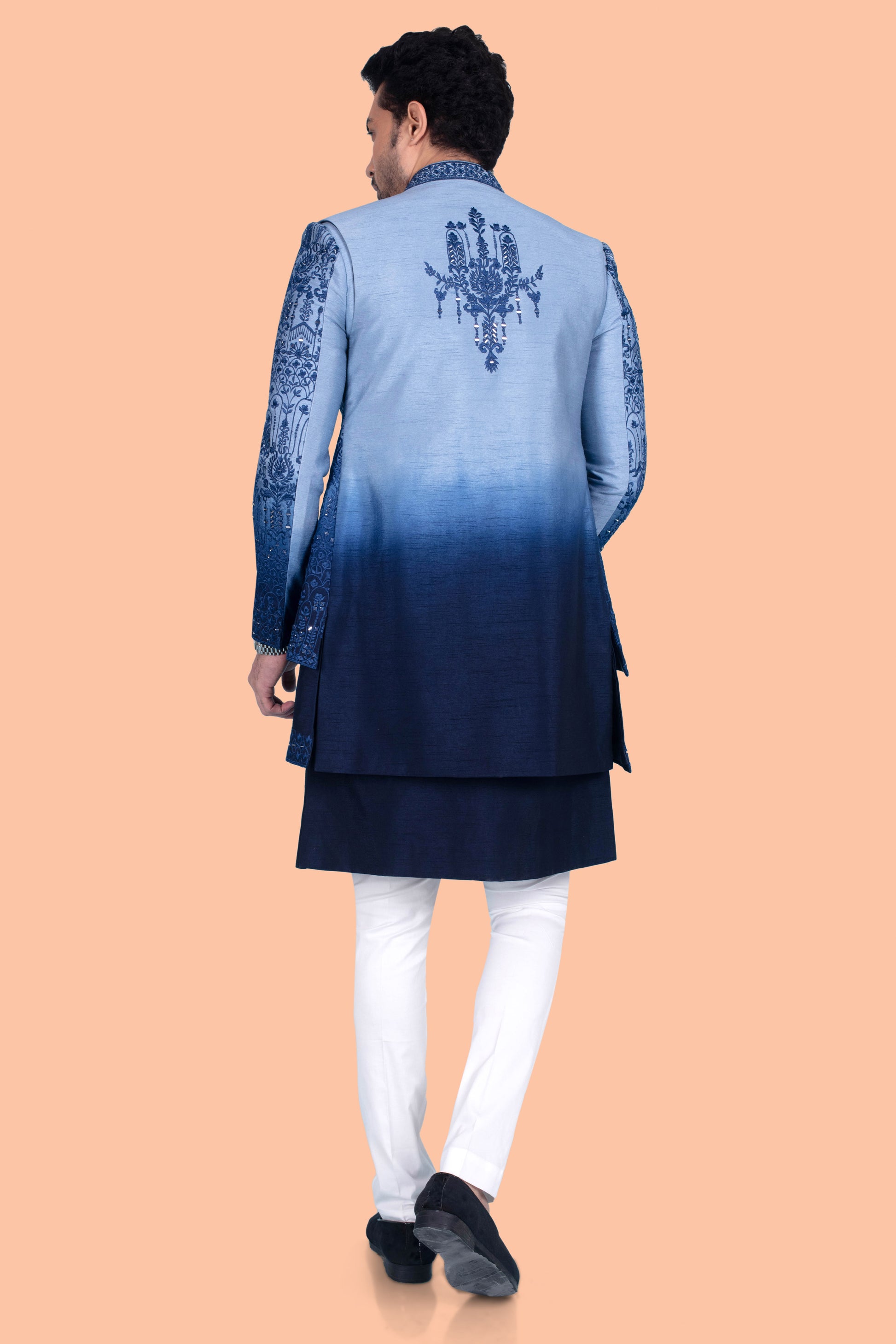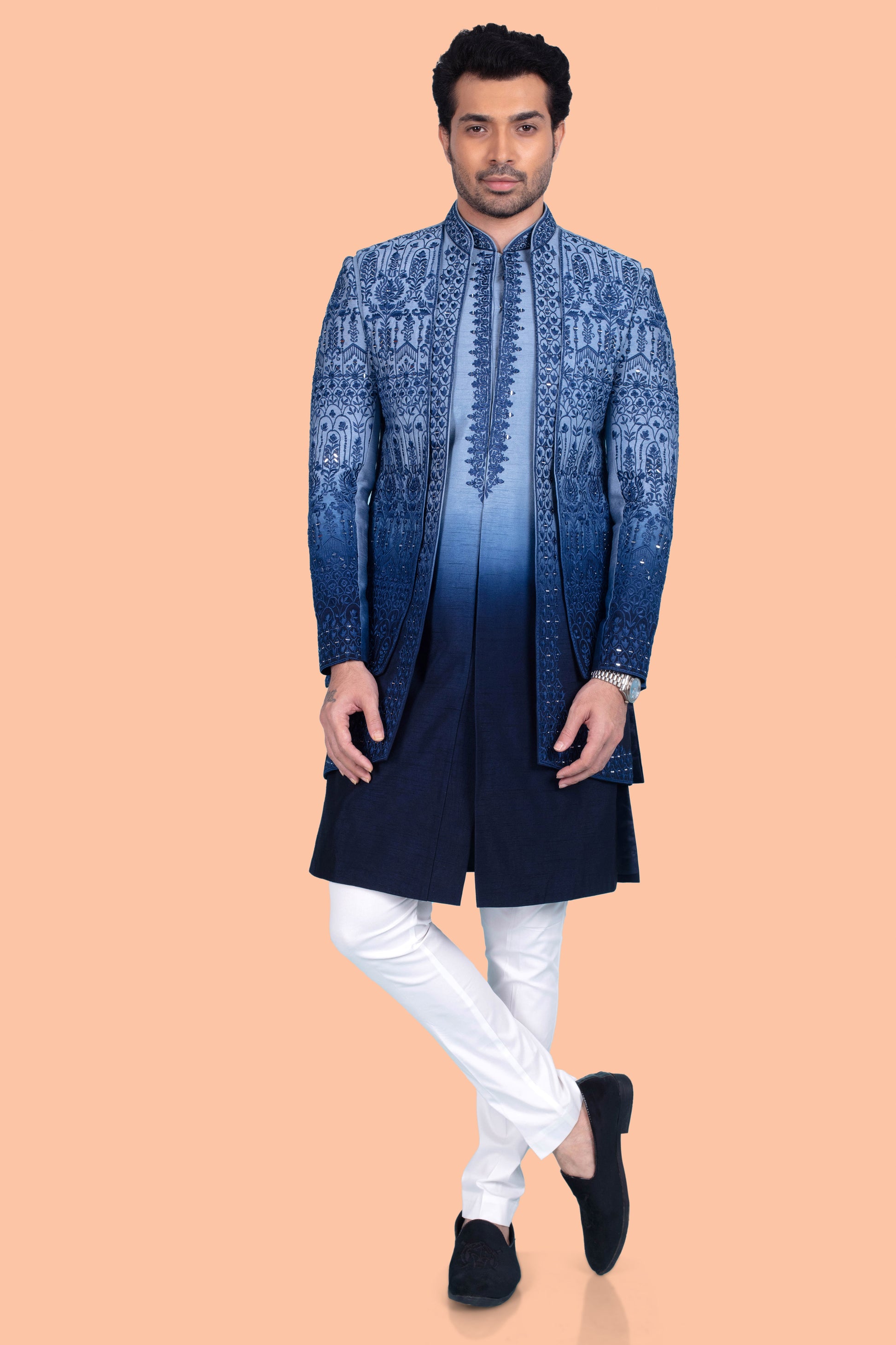 Indulge in the opulence and grace of our Mens Sherwani S86-S2. Adorned with intricate thread and mirror work, this luxury ensemble exudes sophistication and exclusivity. Elevate your style with this artfully crafted piece, perfect for special occasions and events.