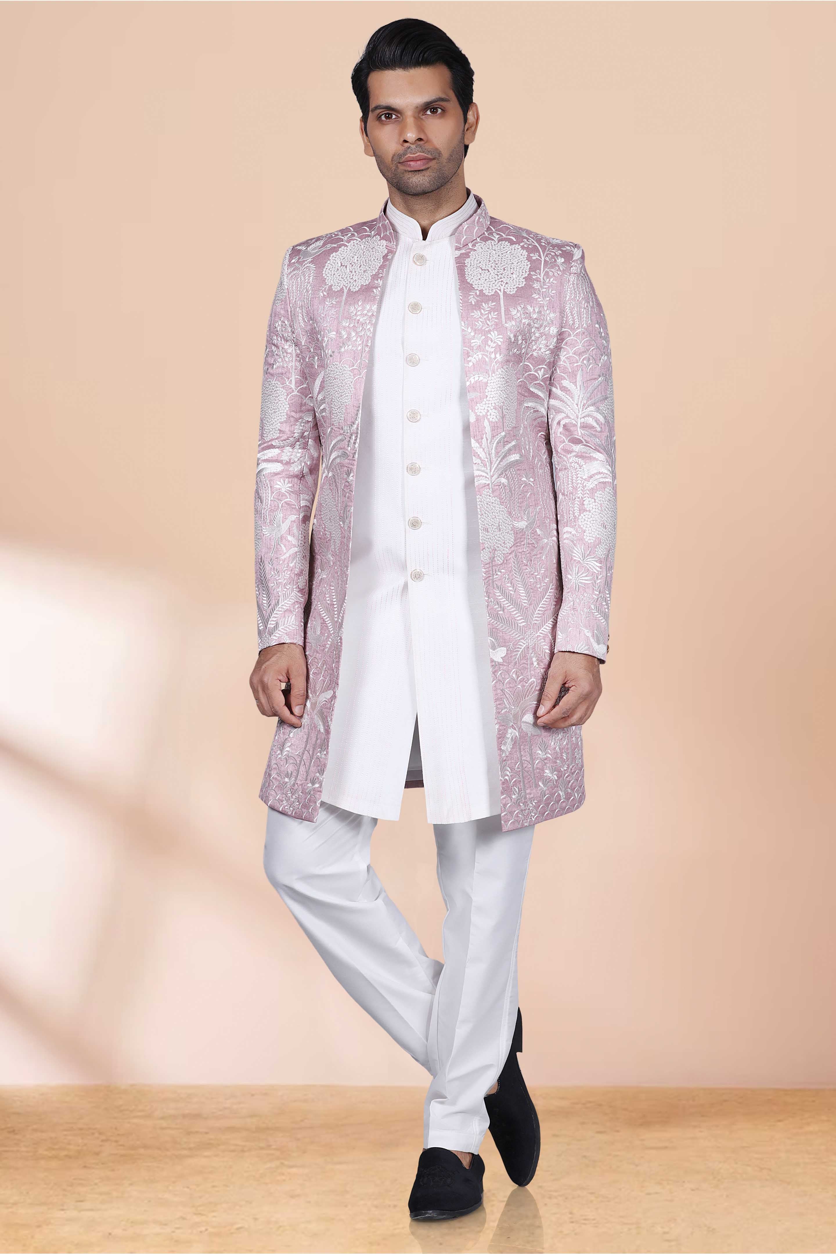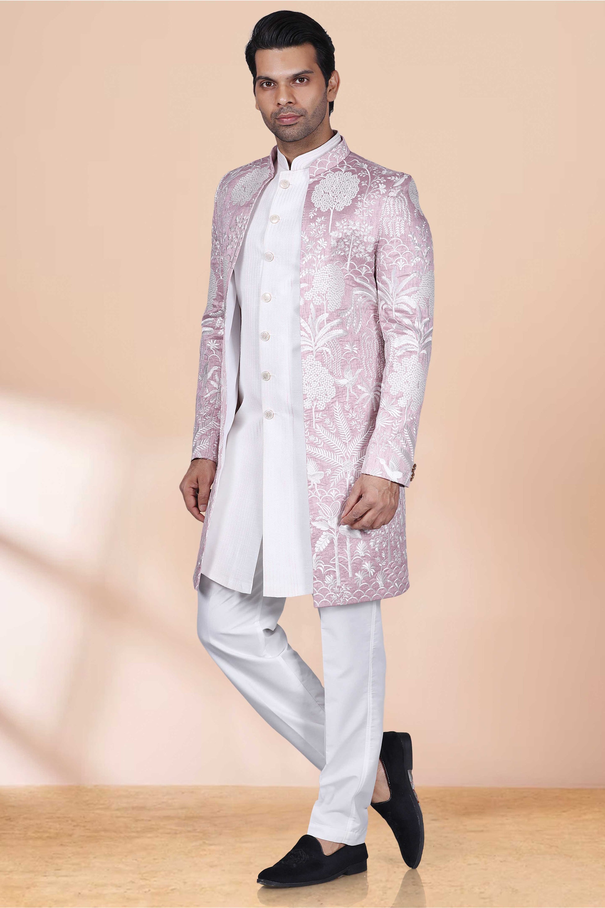 Infuse your wardrobe with traditional elegance with our Mens Sherwani V26-S08. This open jacket sherwani features intricate thread work, bringing an elevated level of sophistication to any occasion. Elevate your style and make a statement with this unique piece.