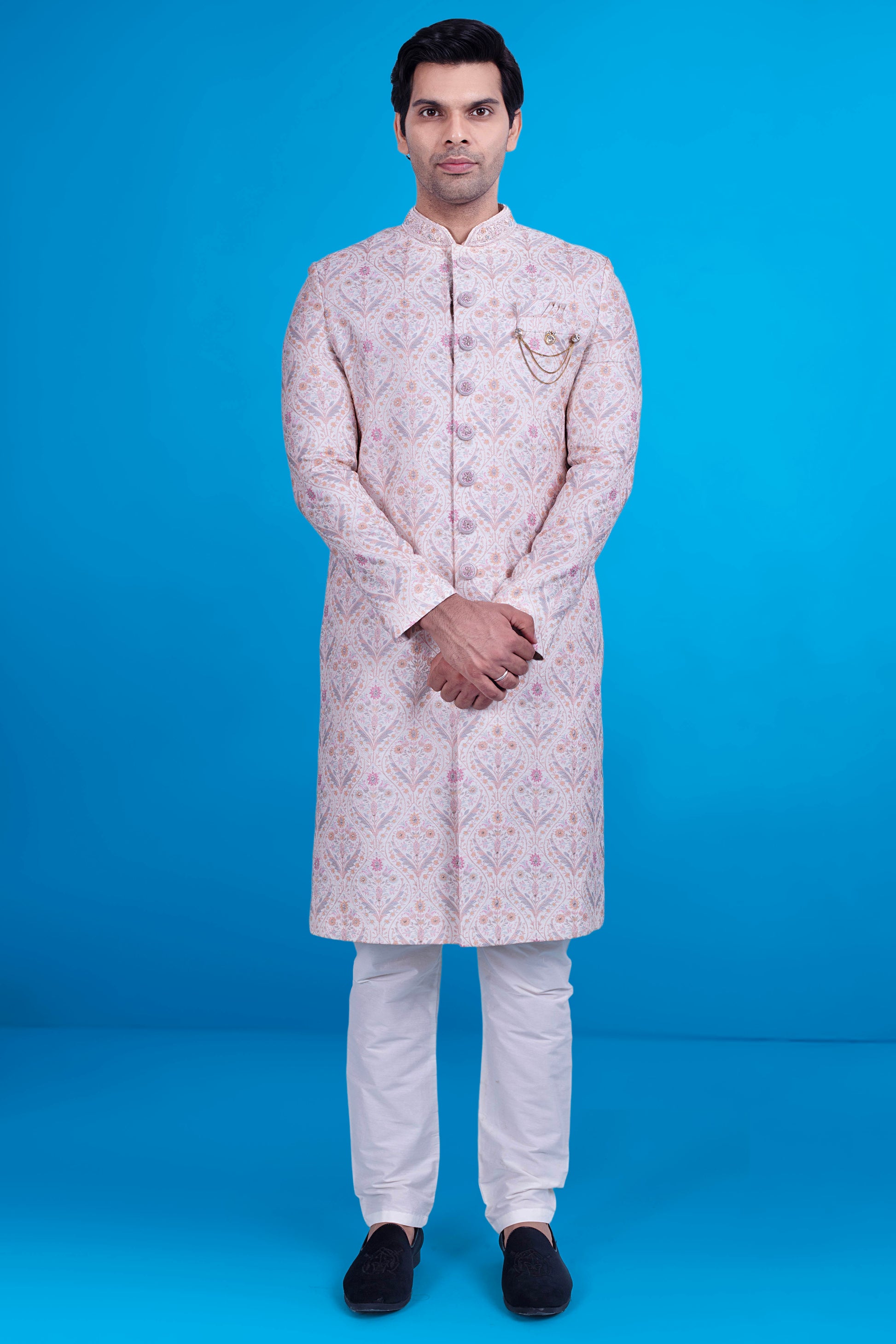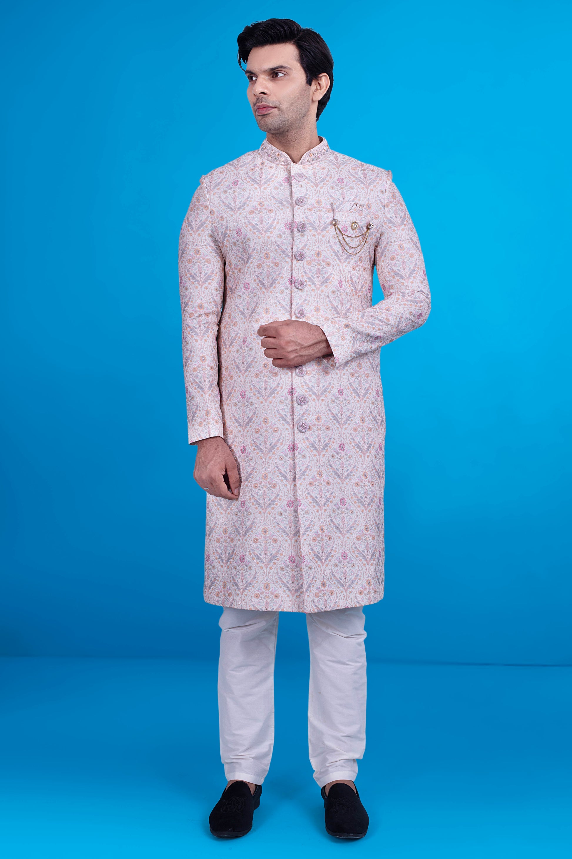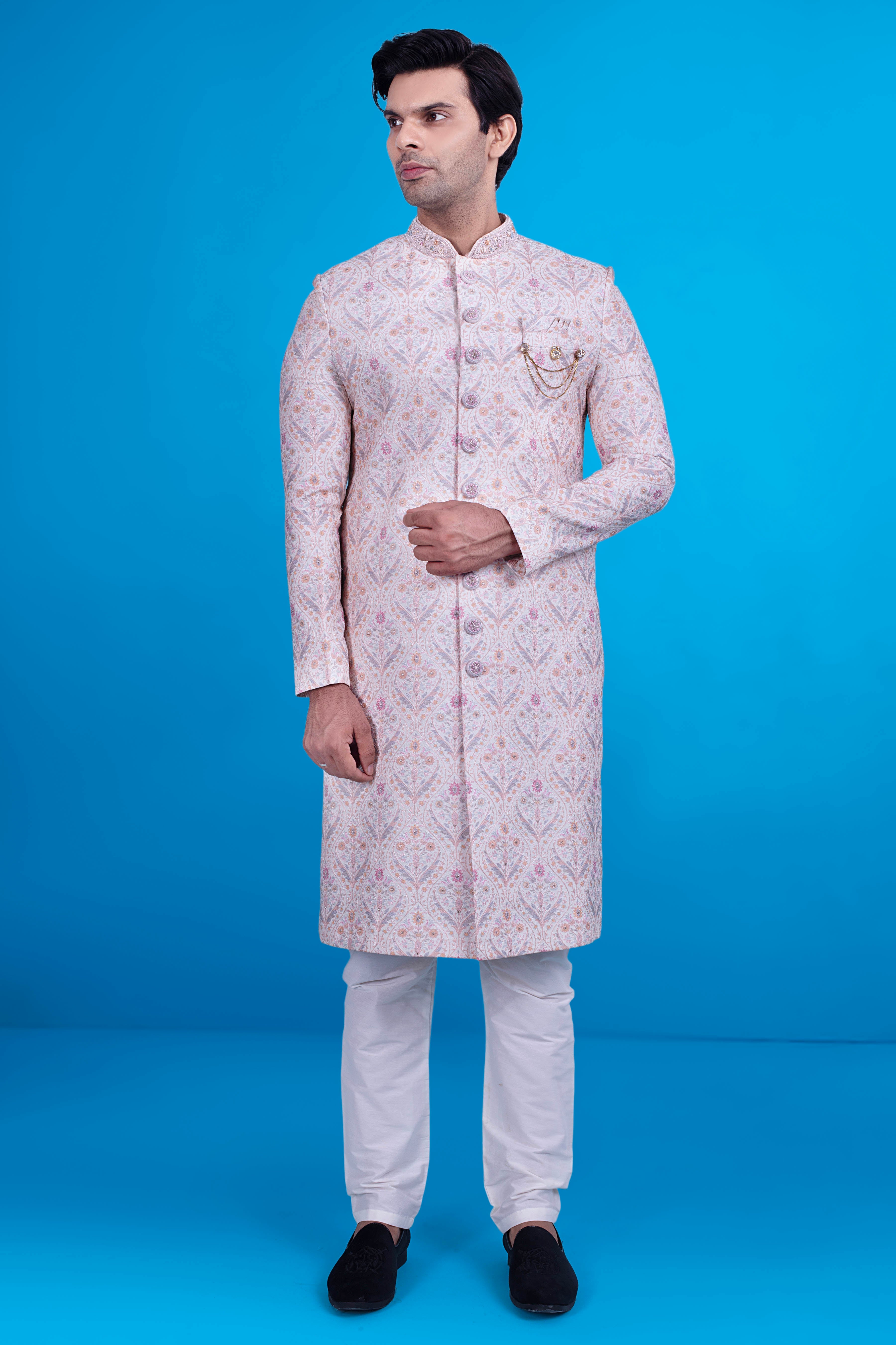 Elevate your ethnic look with our Mens Sherwani U2-S218, featuring exquisite multi color thread work. Stand out in style and exude confidence with this statement piece. Perfect for weddings, festivities, or any special occasion. Experience the richness and charm of traditional craftsmanship with every wear.