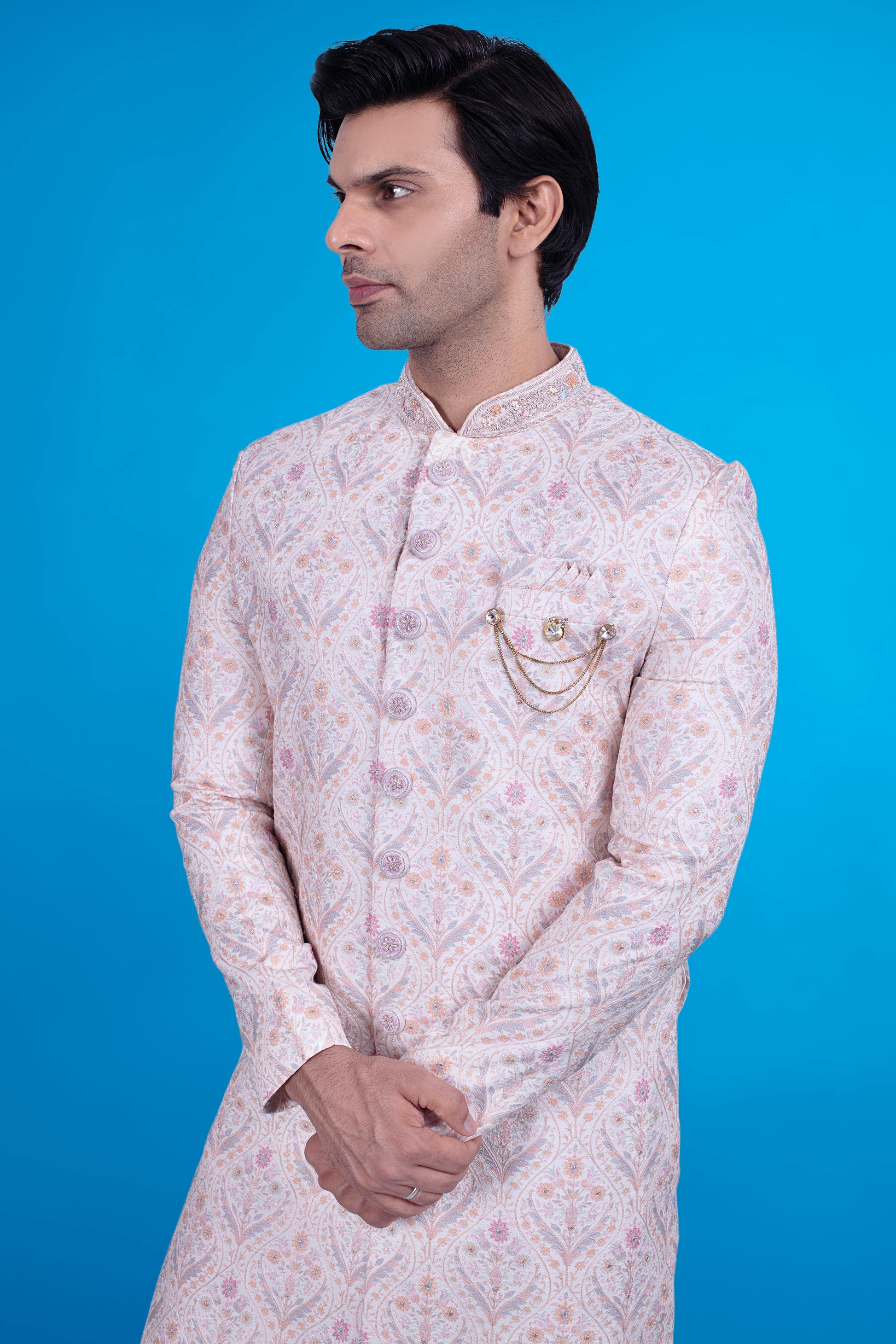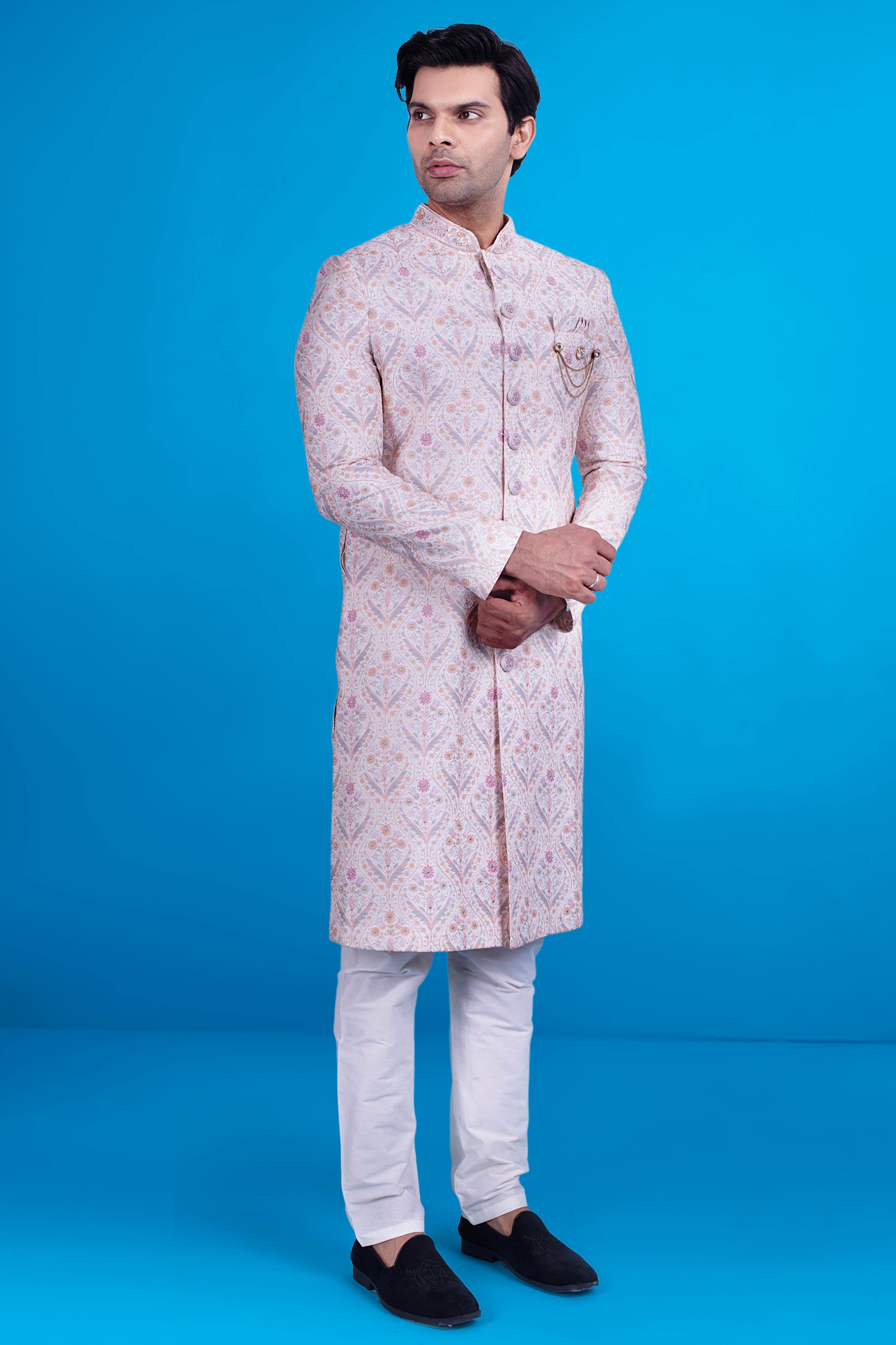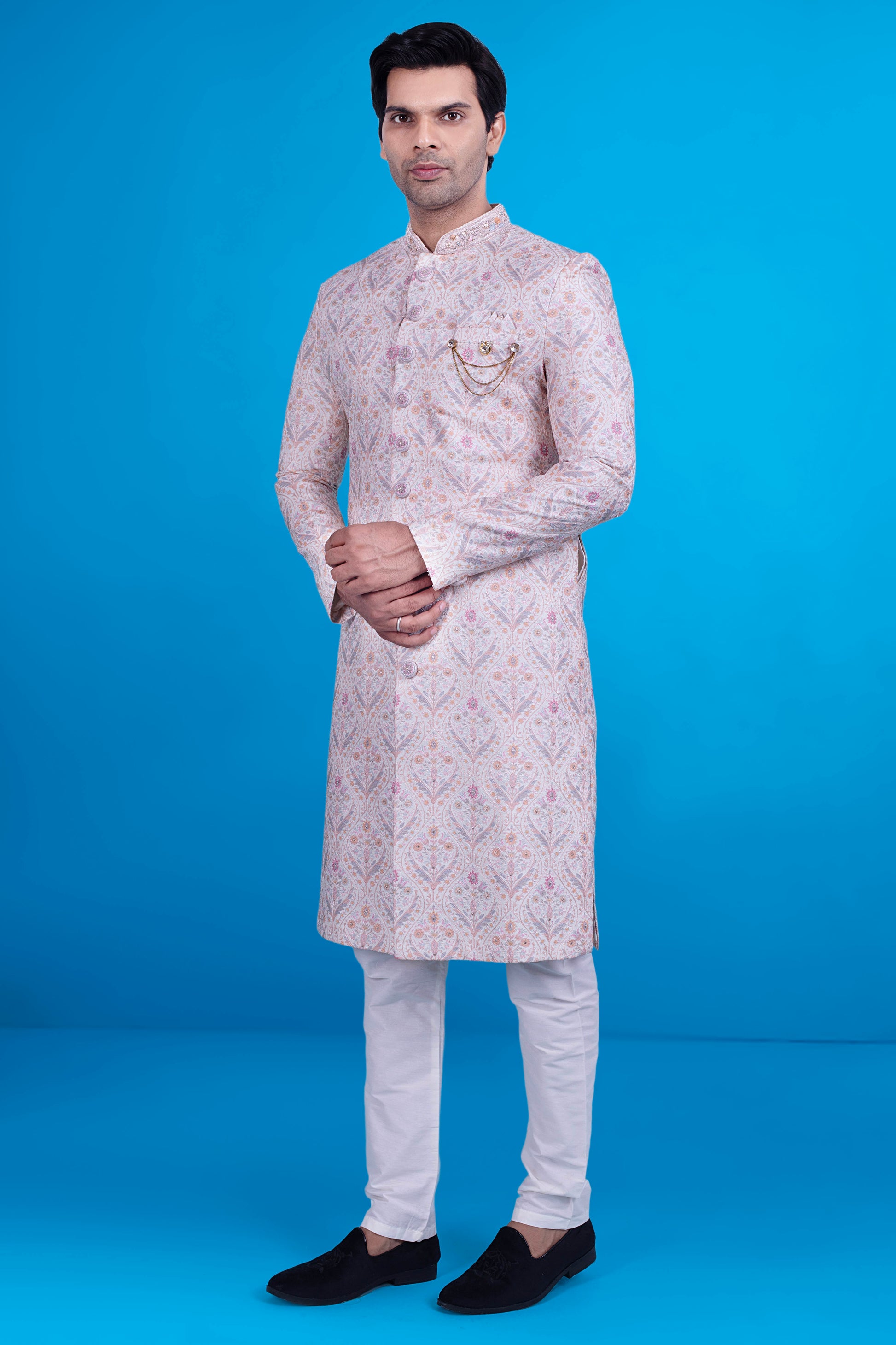 Elevate your ethnic look with our Mens Sherwani U2-S218, featuring exquisite multi color thread work. Stand out in style and exude confidence with this statement piece. Perfect for weddings, festivities, or any special occasion. Experience the richness and charm of traditional craftsmanship with every wear.