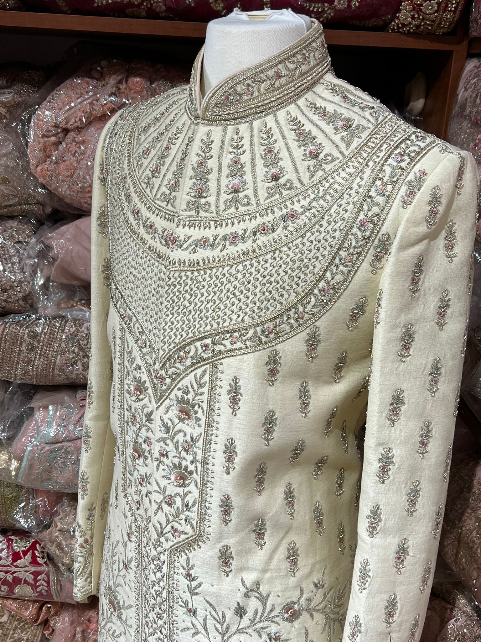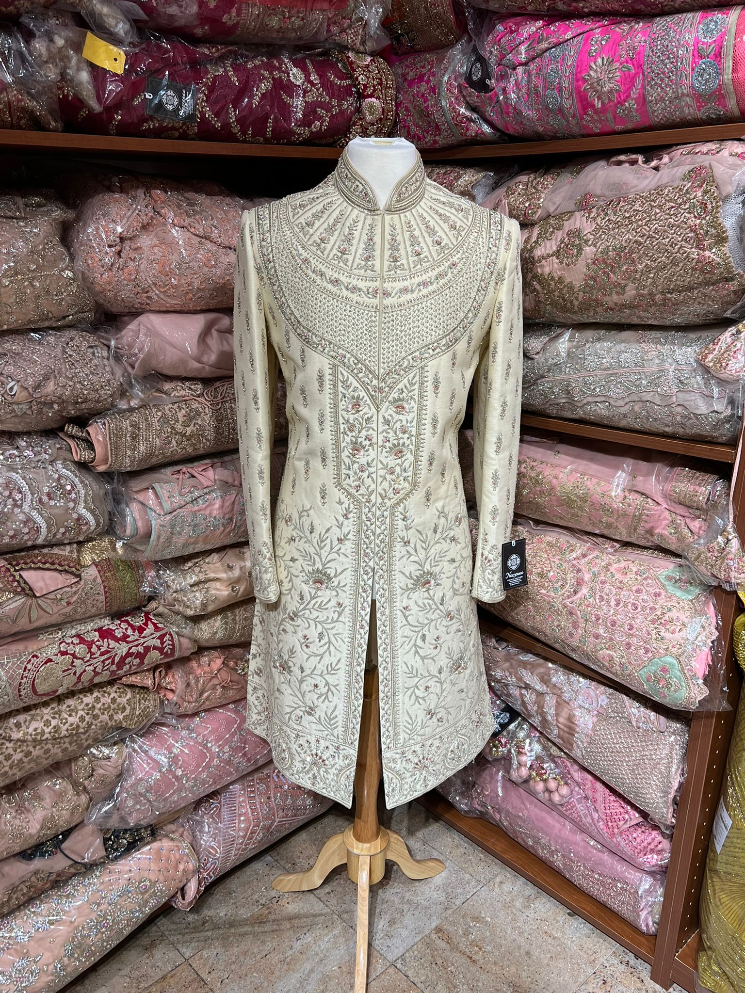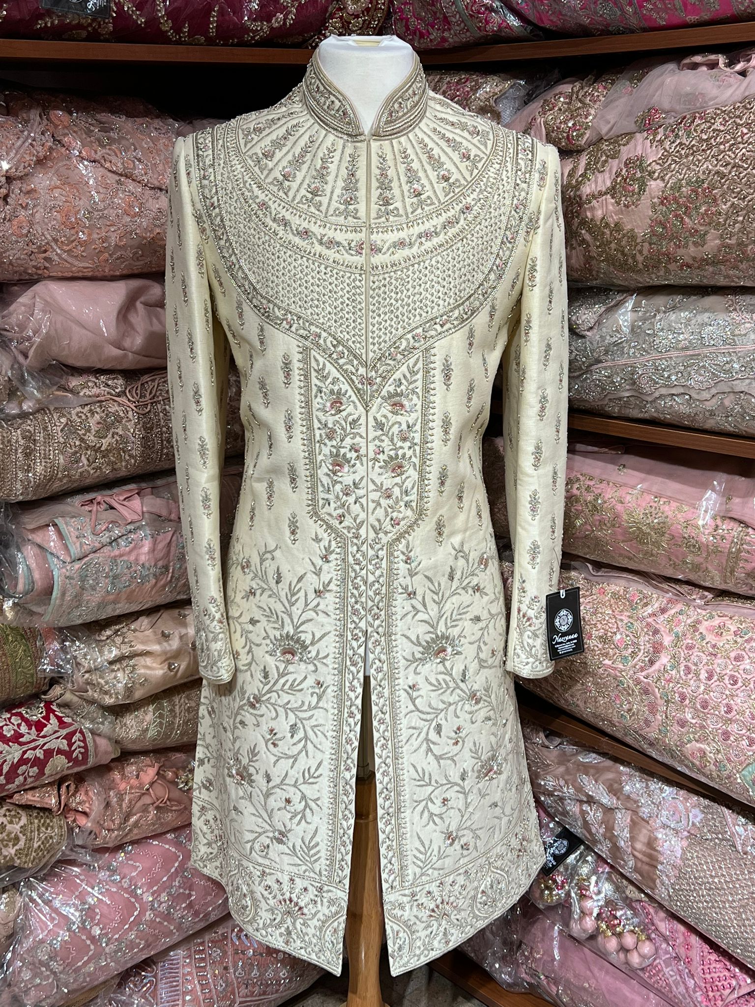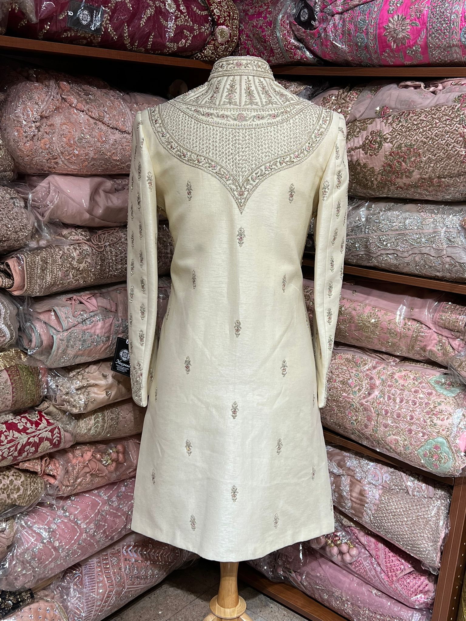Rajwadi Cream Thread Embroidered Sherwani-R14-N43