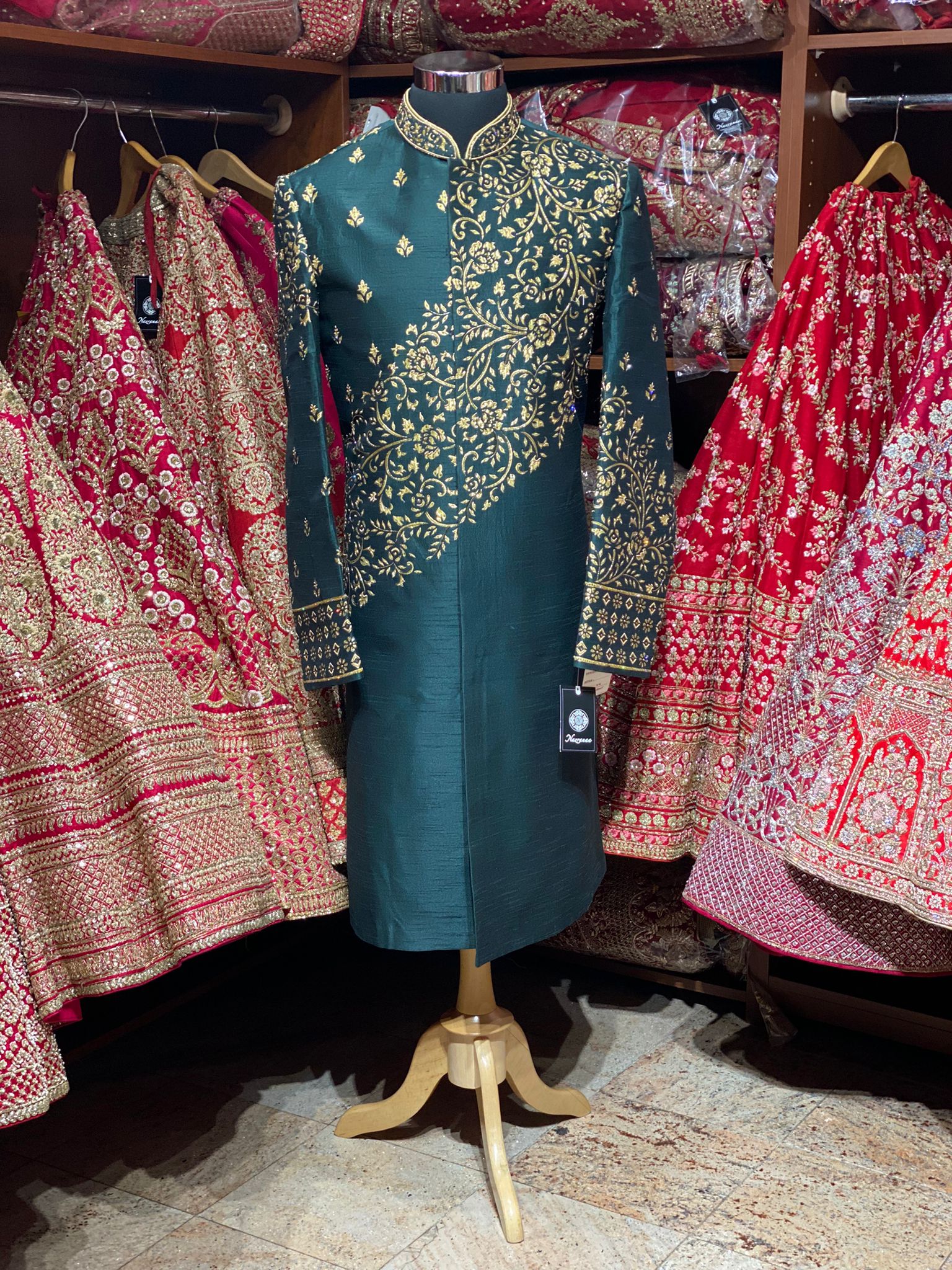 Dark Teal Green Cut Dana Embroidered Sherwani