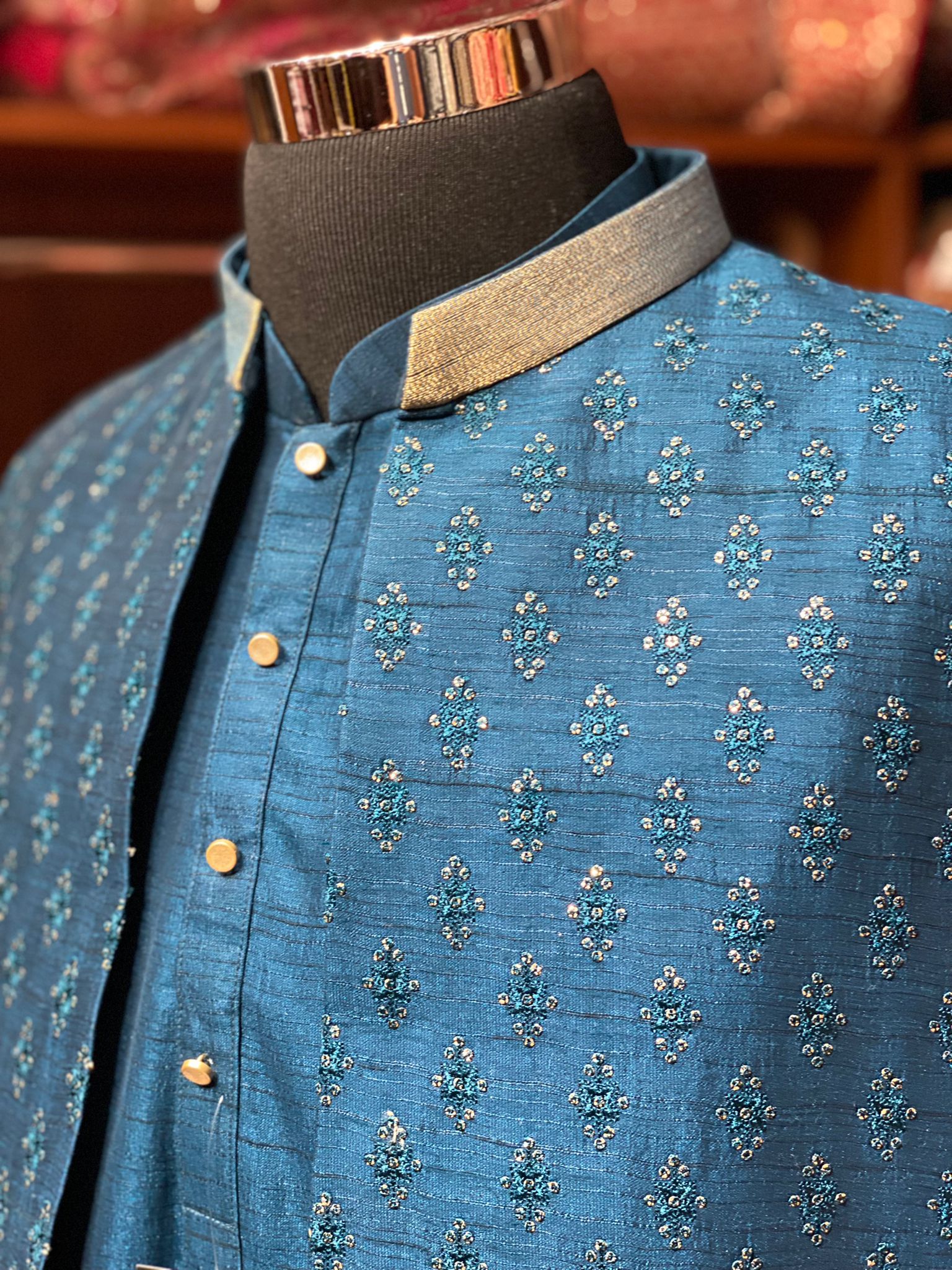 Indigo Blue Sequins Indo Western Embroidered Sherwani