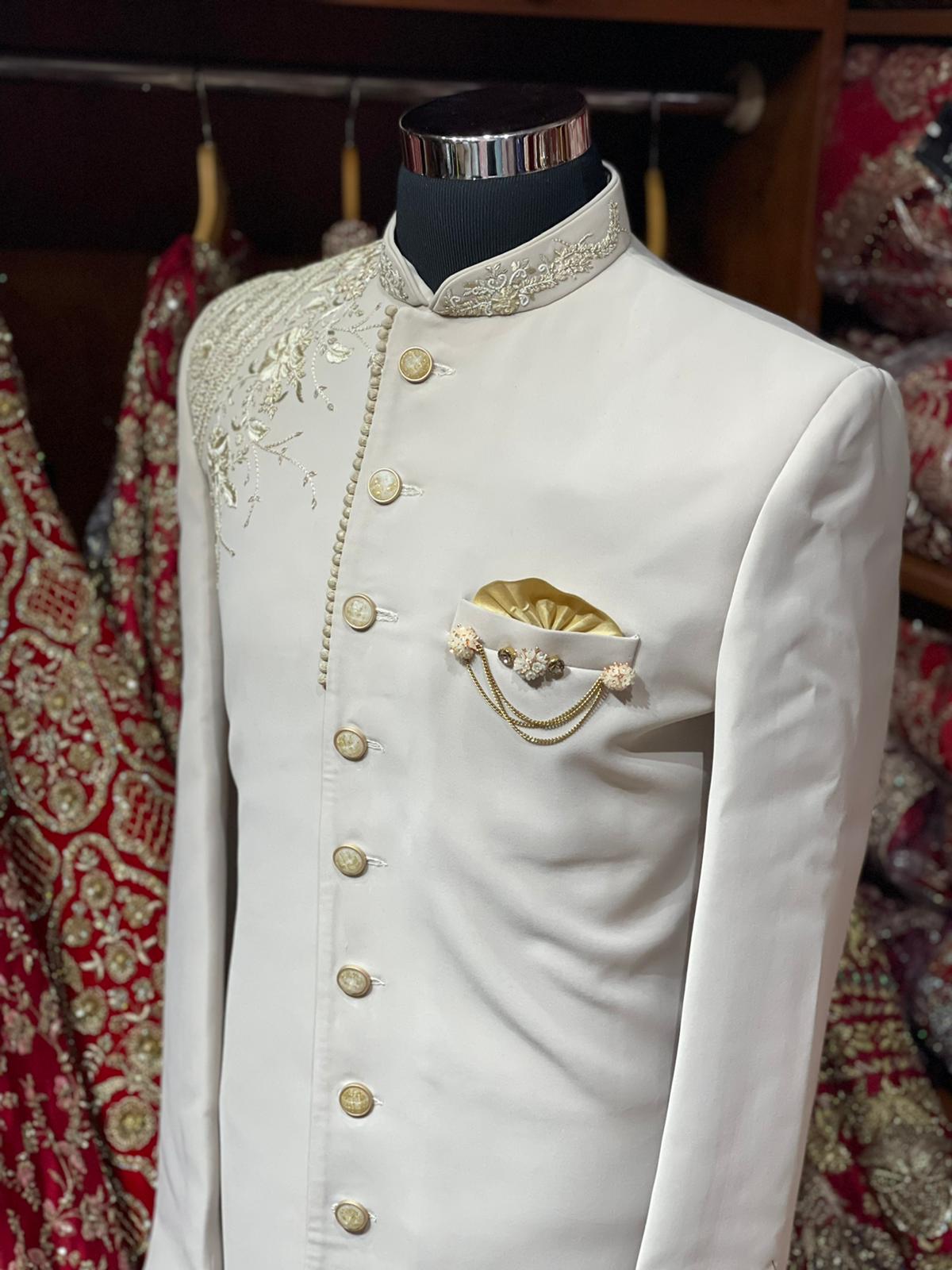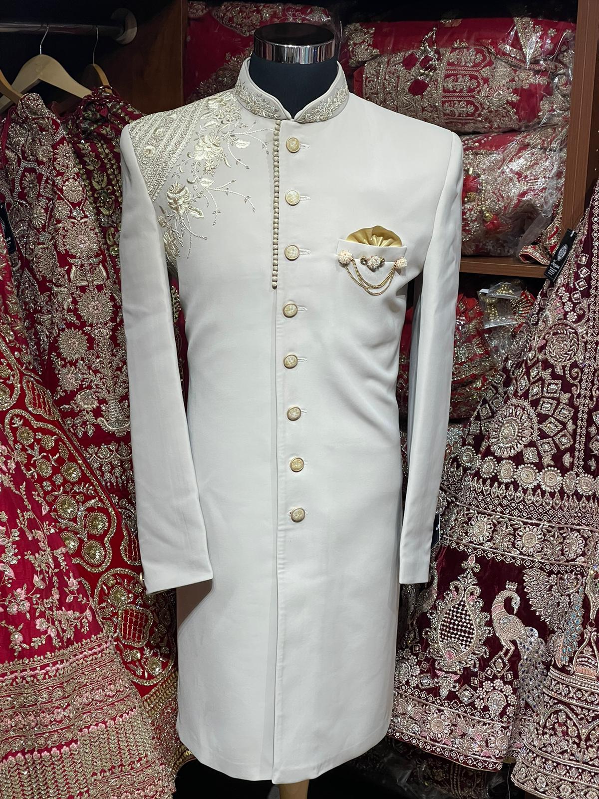 Ivory White Indo Western Sherwani- S1359