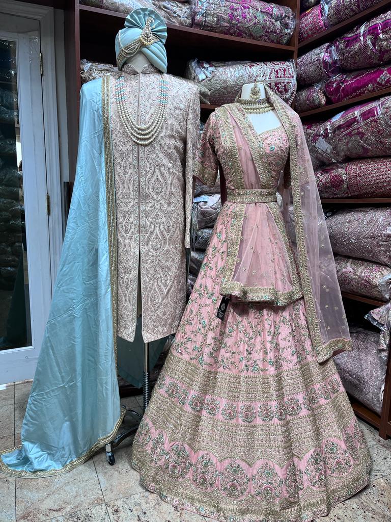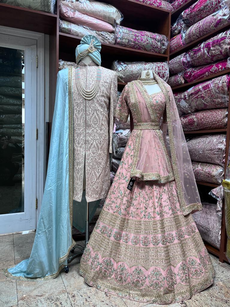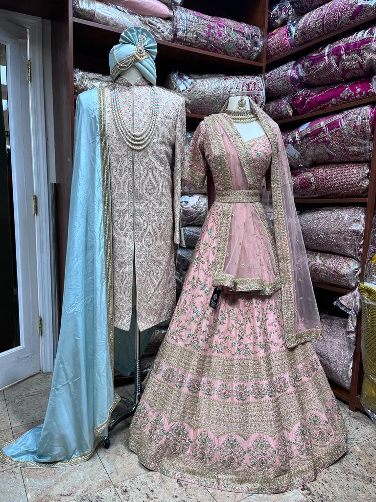 • Stunning blush pink Lehenga with Zardosi and Hand Embroidery.