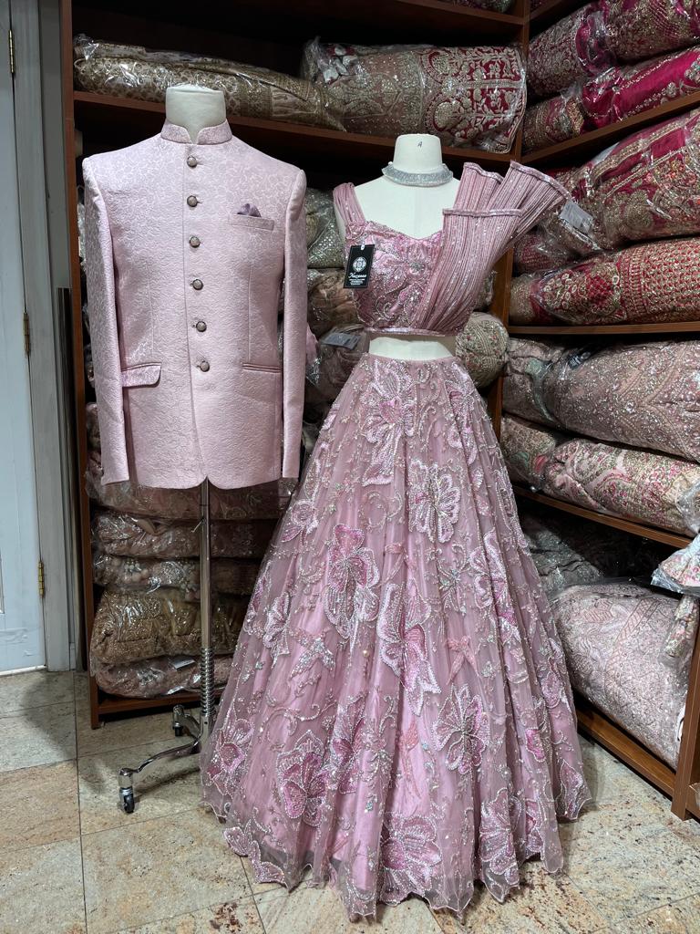 • Lilac color lehenga intricate with fully sequence, studs motifs thread embroidery and crystal stone flared lehenga. Styled with same work blouse and net dupatta.