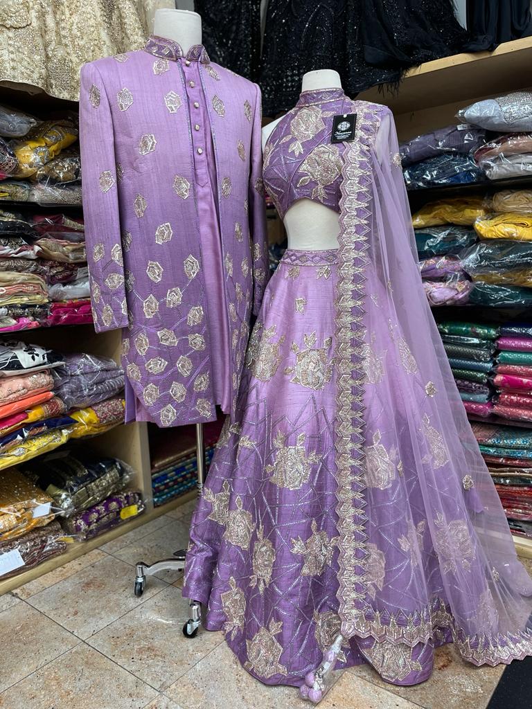 • Lavender color lehenga intricate with fully sequence, studs motifs thread embroidery and crystal stone flared lehenga. Styled with a matching blouse and net dupatta.