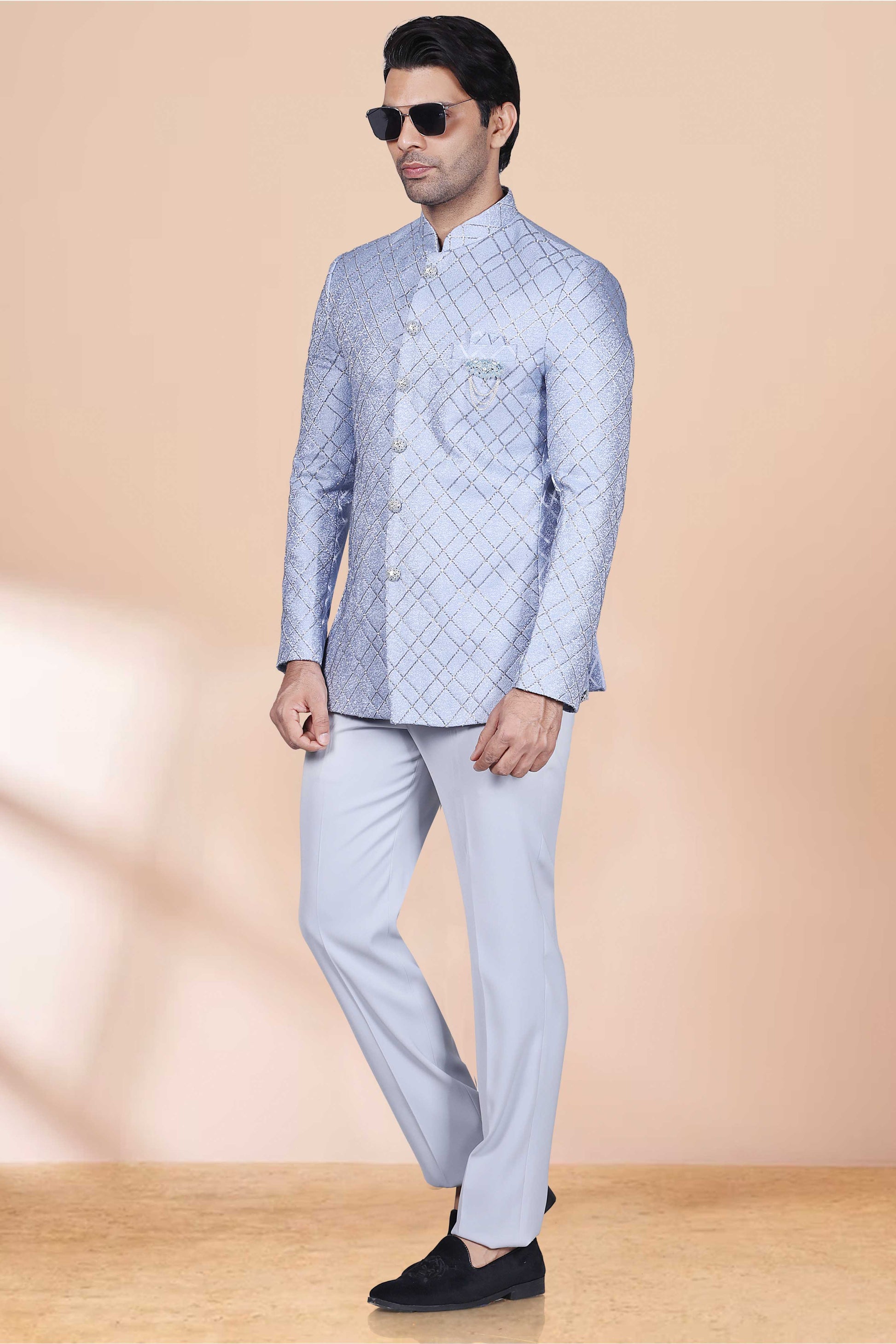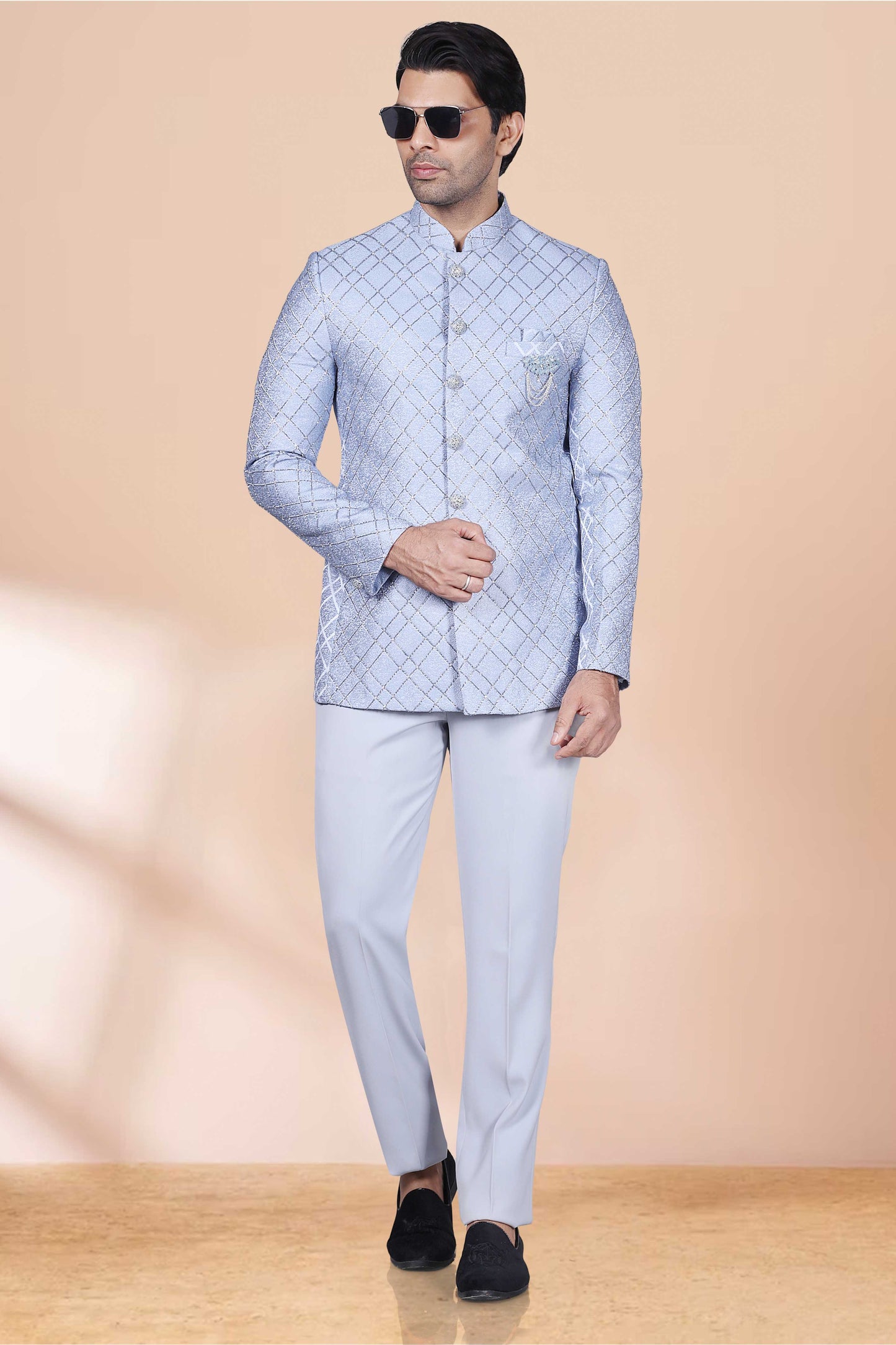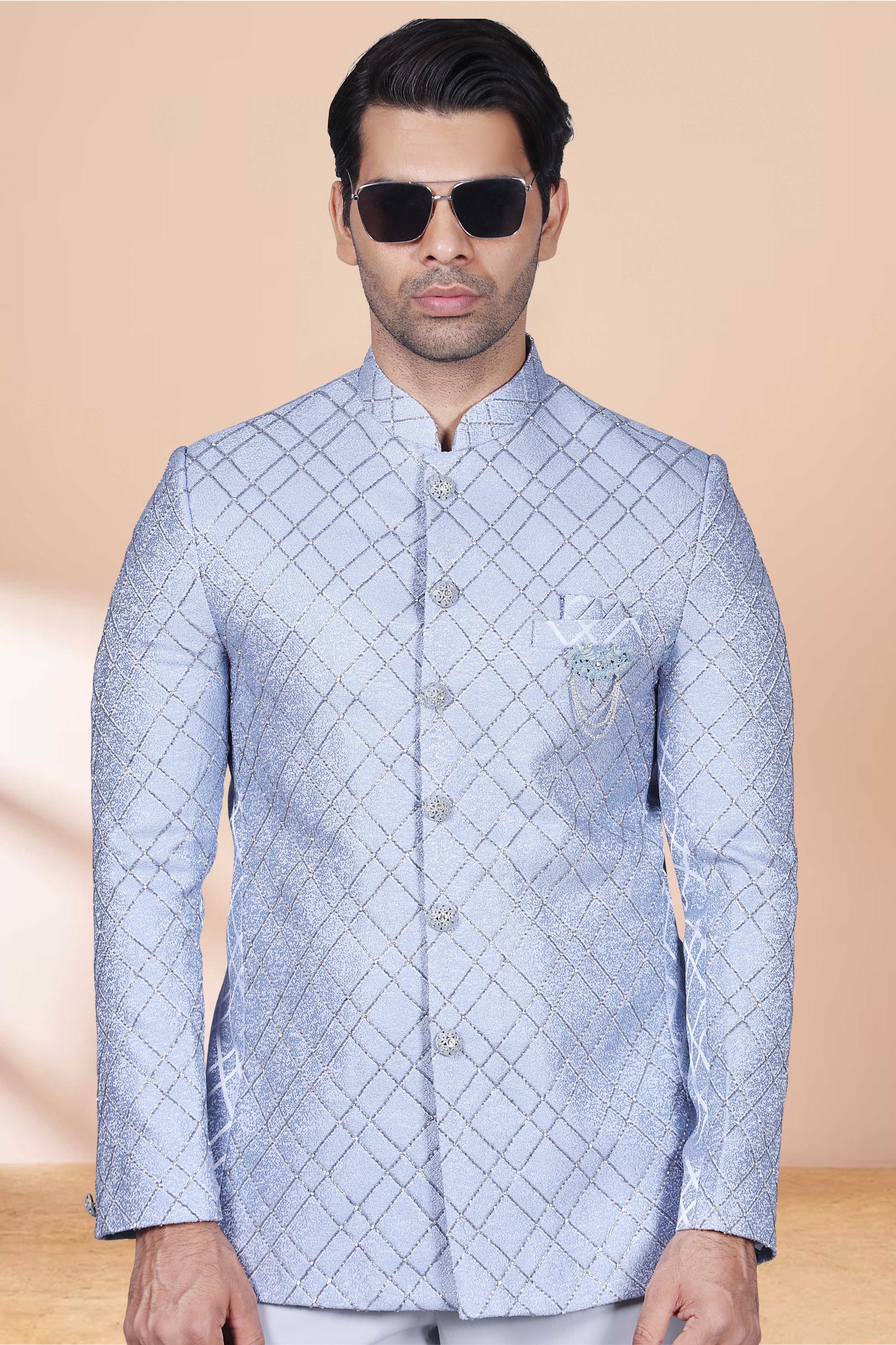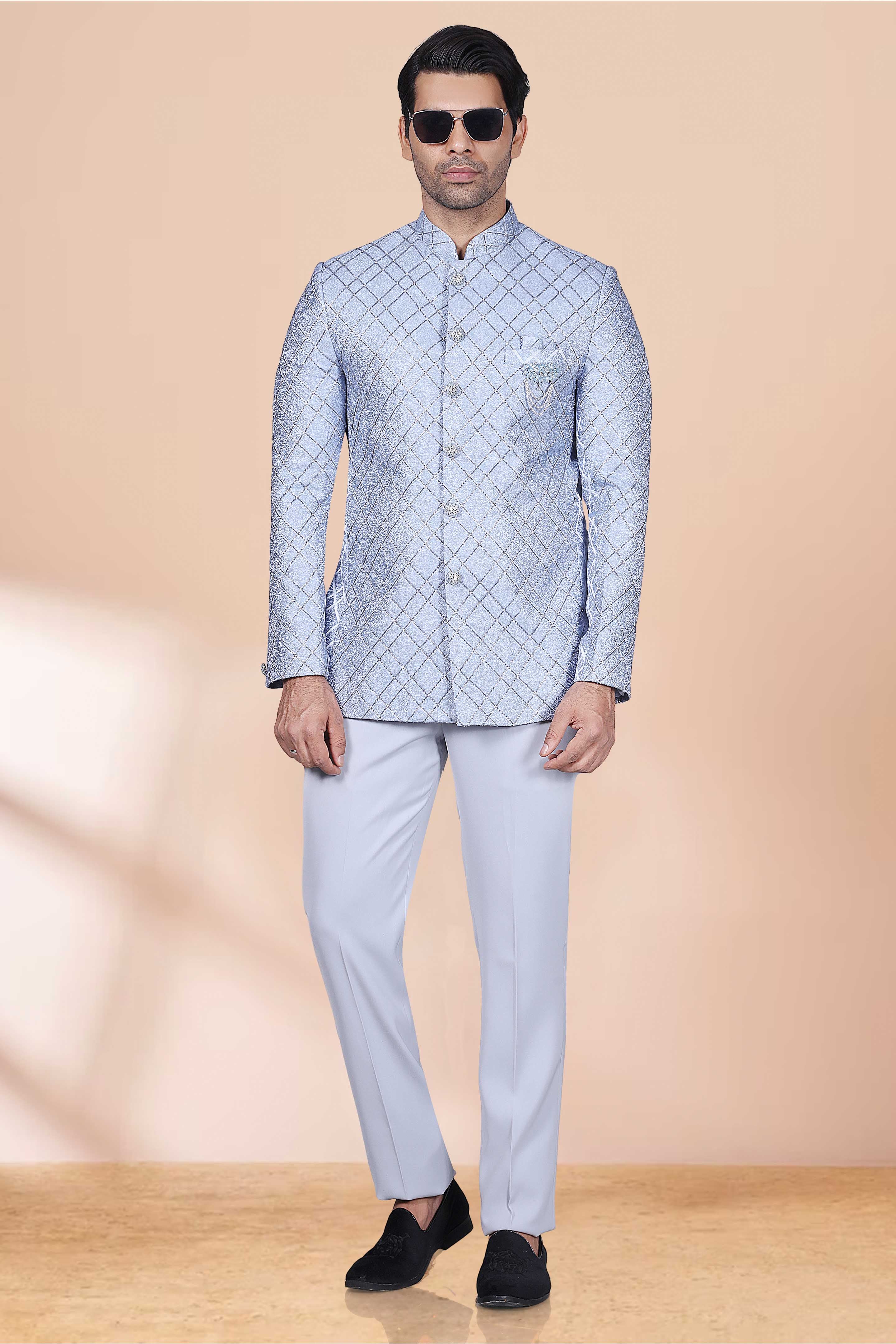 Introducing our Men's Bandhgala M42-S113, designed with cutdana and stone work for a touch of elegance and personality. Stand out with this unique and stylish piece, perfect for any special occasion. (Formal wear just got a whole lot cooler!)